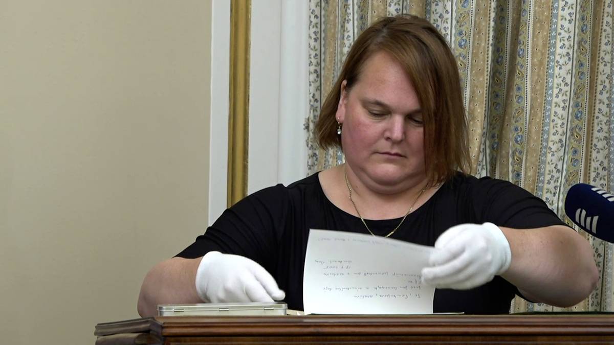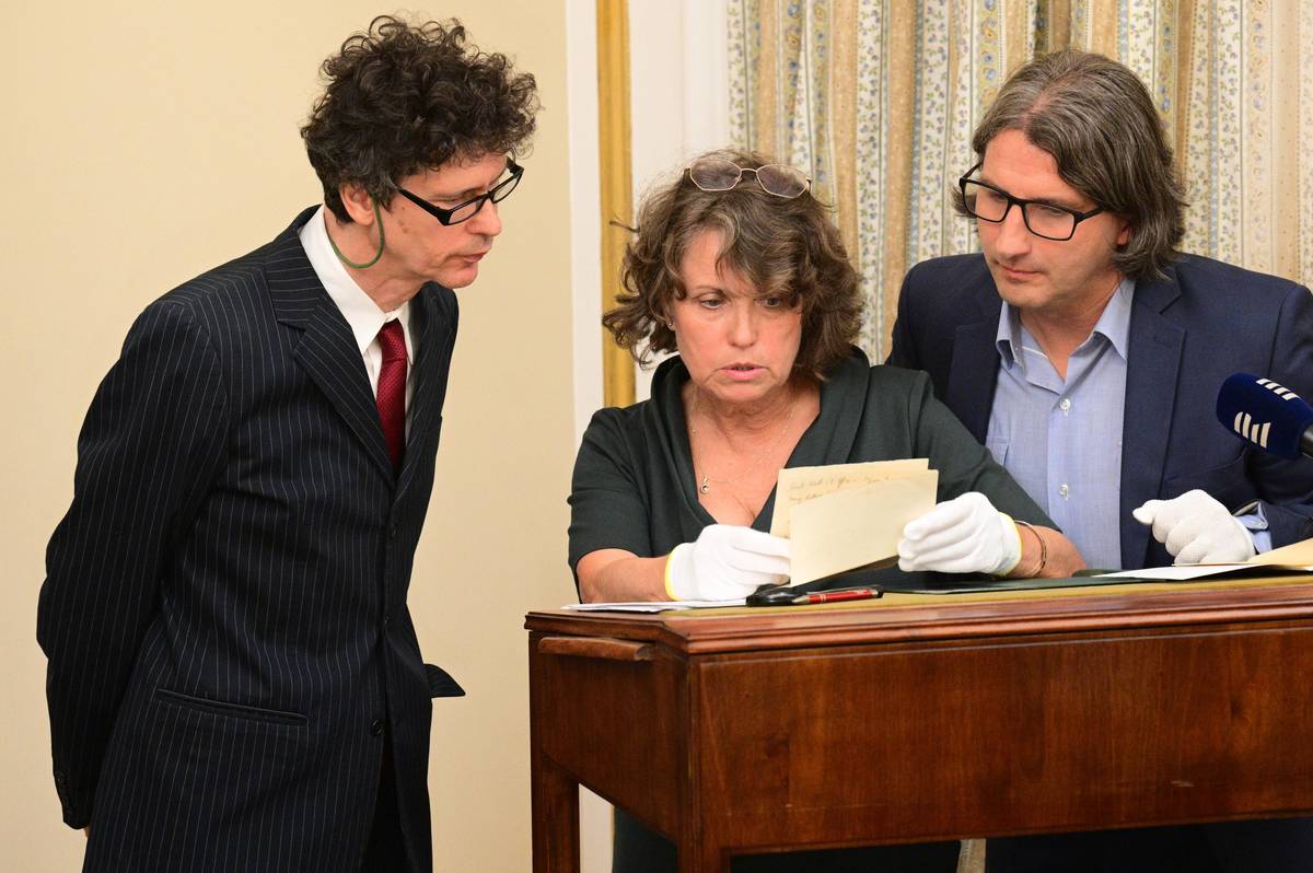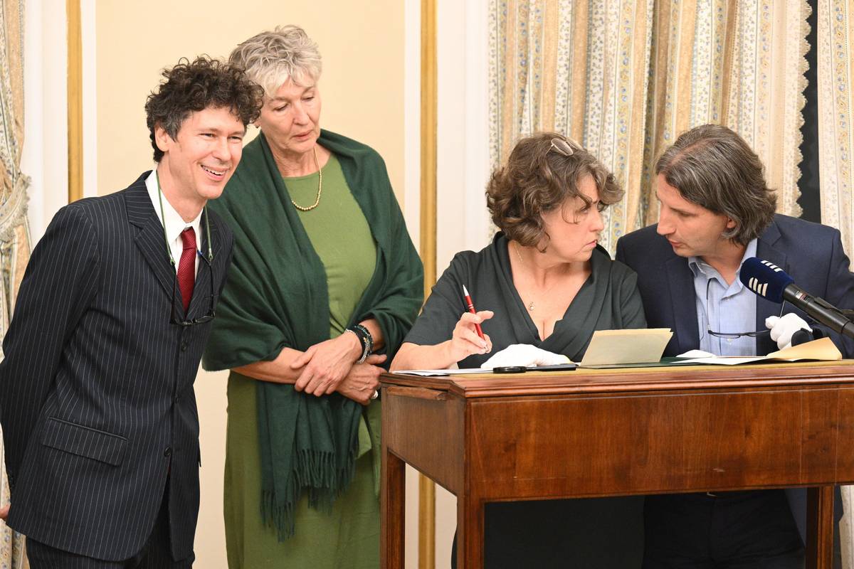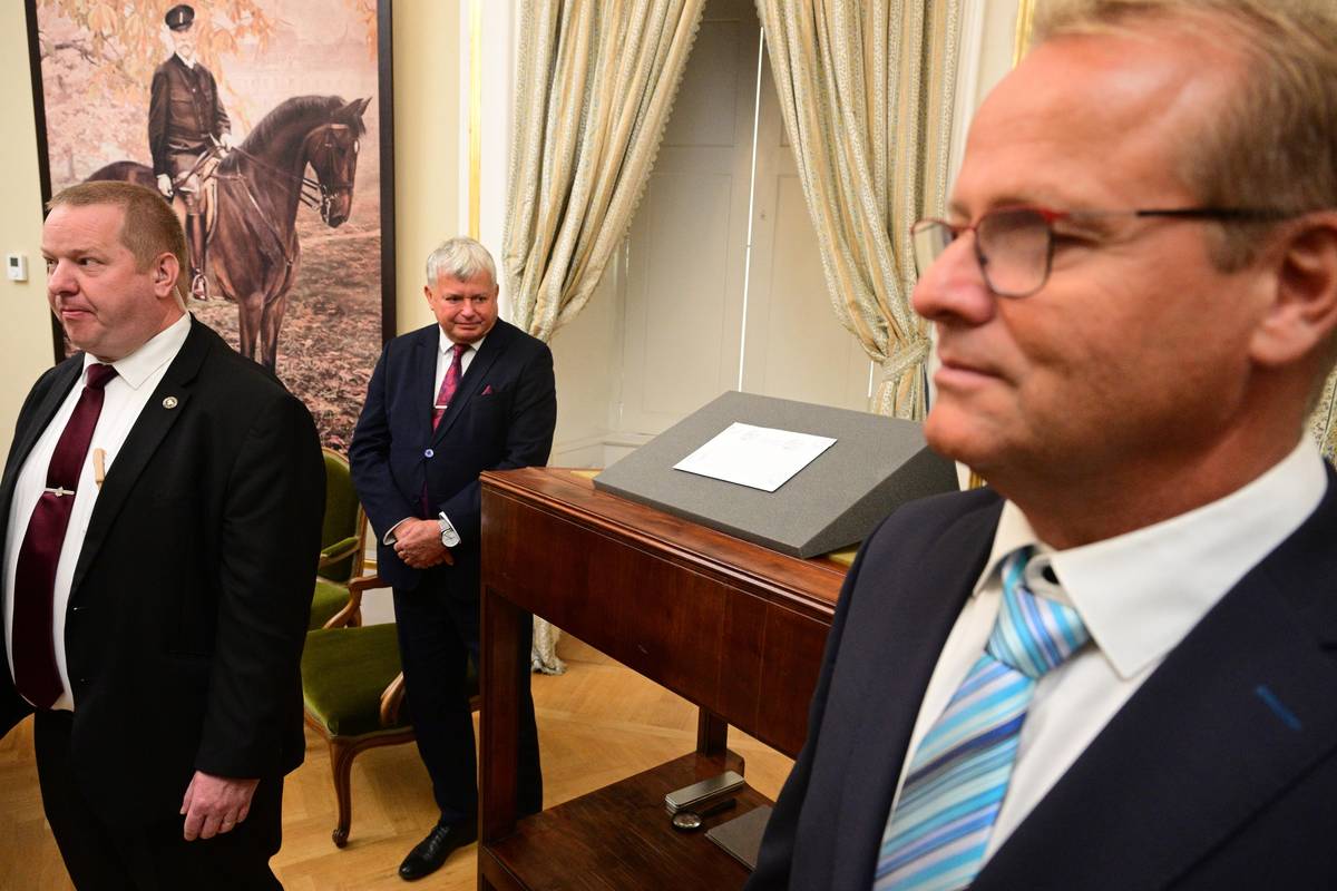 <p>Otevření zapečetěné obálky s údajně posledními slovy Tomáše Garrigua Masaryka, které nadiktoval v září 1937 svému synu Janovi, 19. září 2025, Lány.