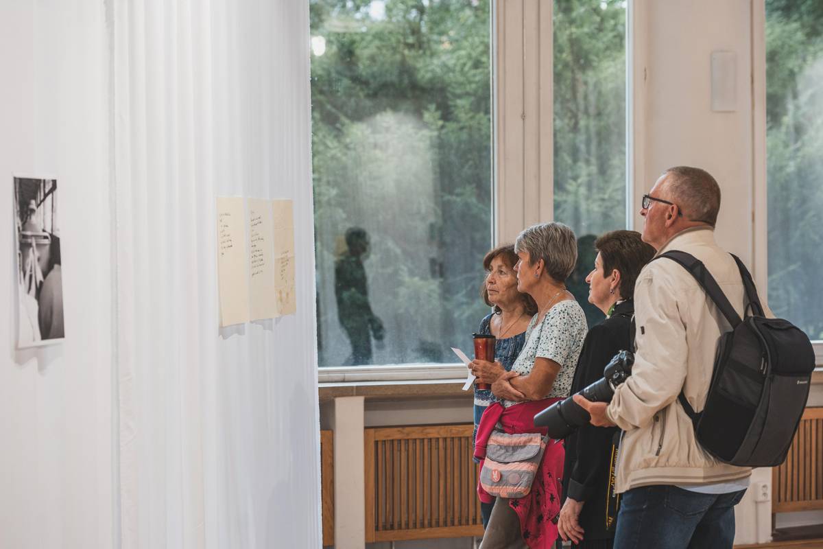 Na snímku z výstavy Make Some Space, která ve zlínském Kolektiv.Hausu potrvá do 17. listopadu, si návštěvníce prohlíží fotografie Libuše Jarcovjákové.