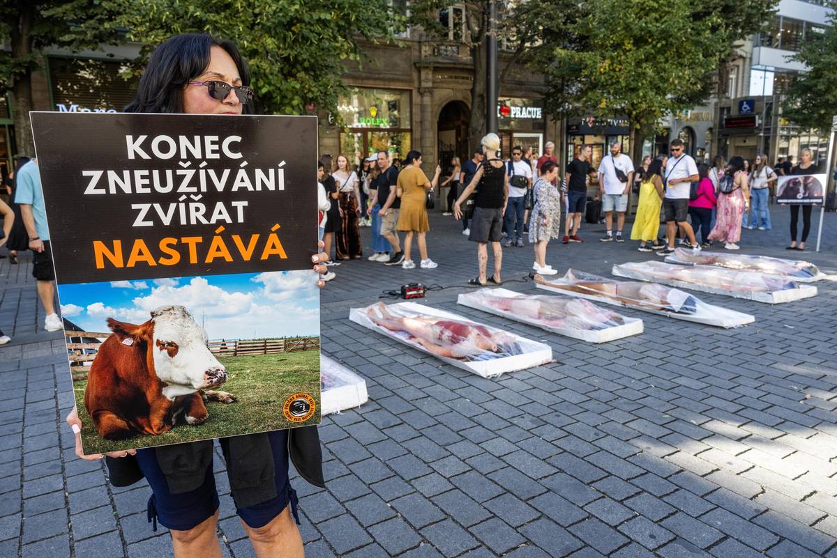 Aktivisté protestovali v Praze proti vykořisťování zvířat.