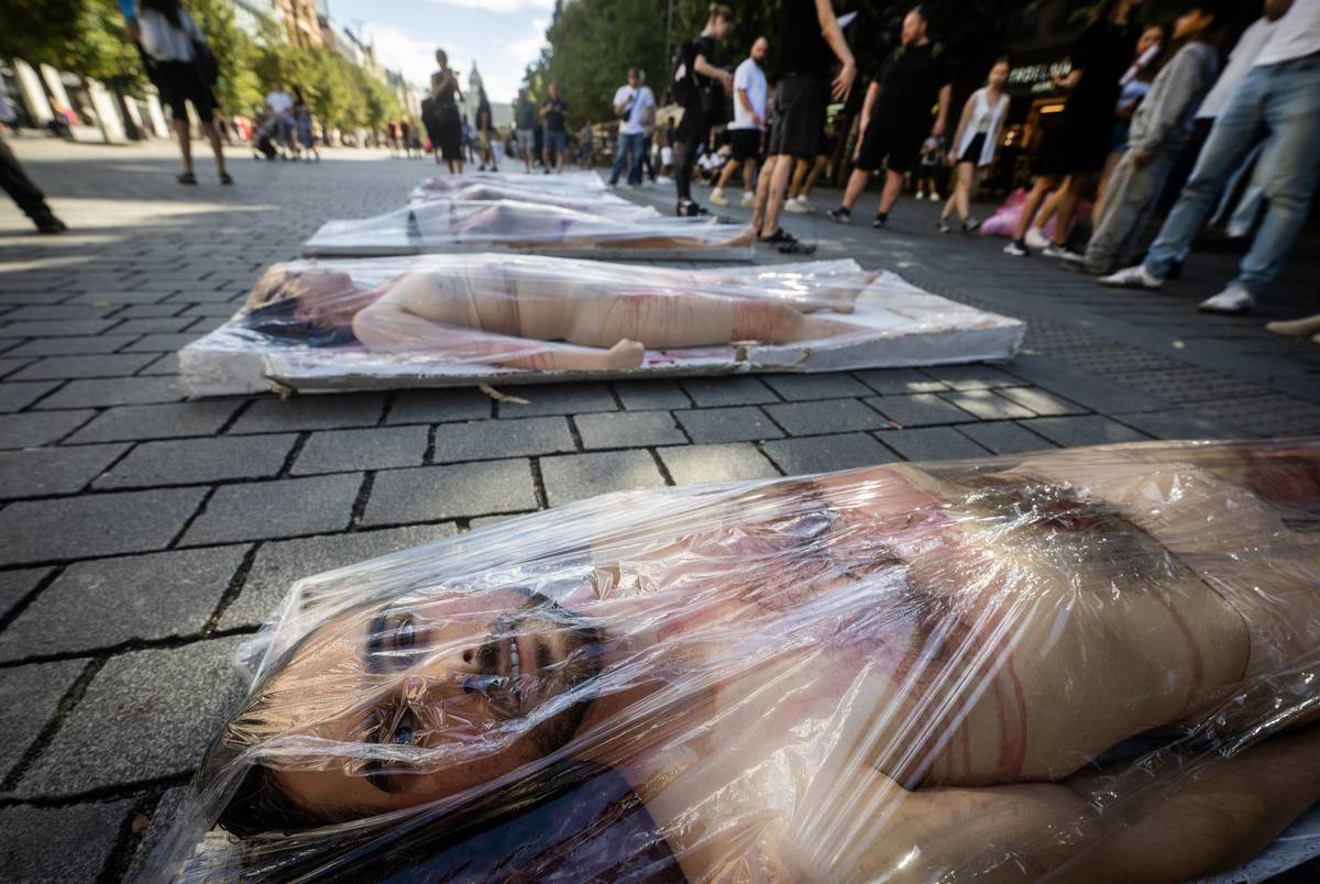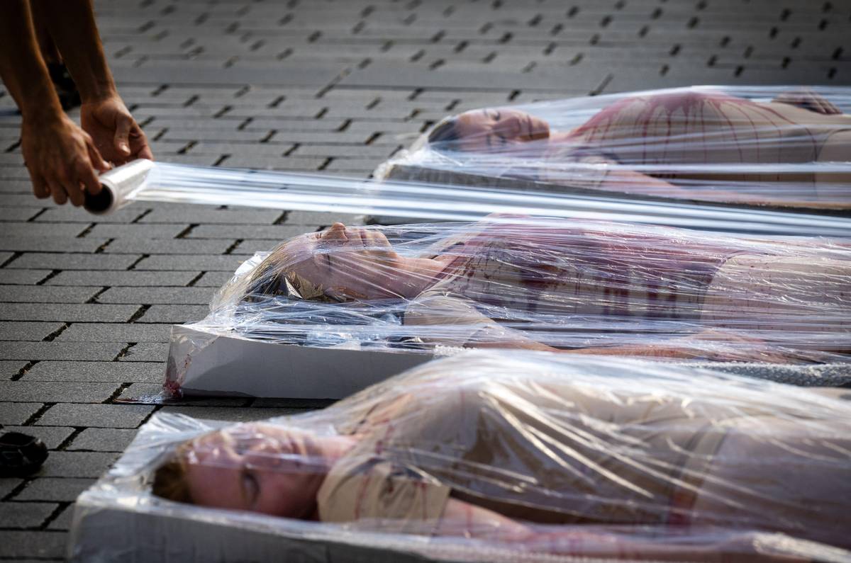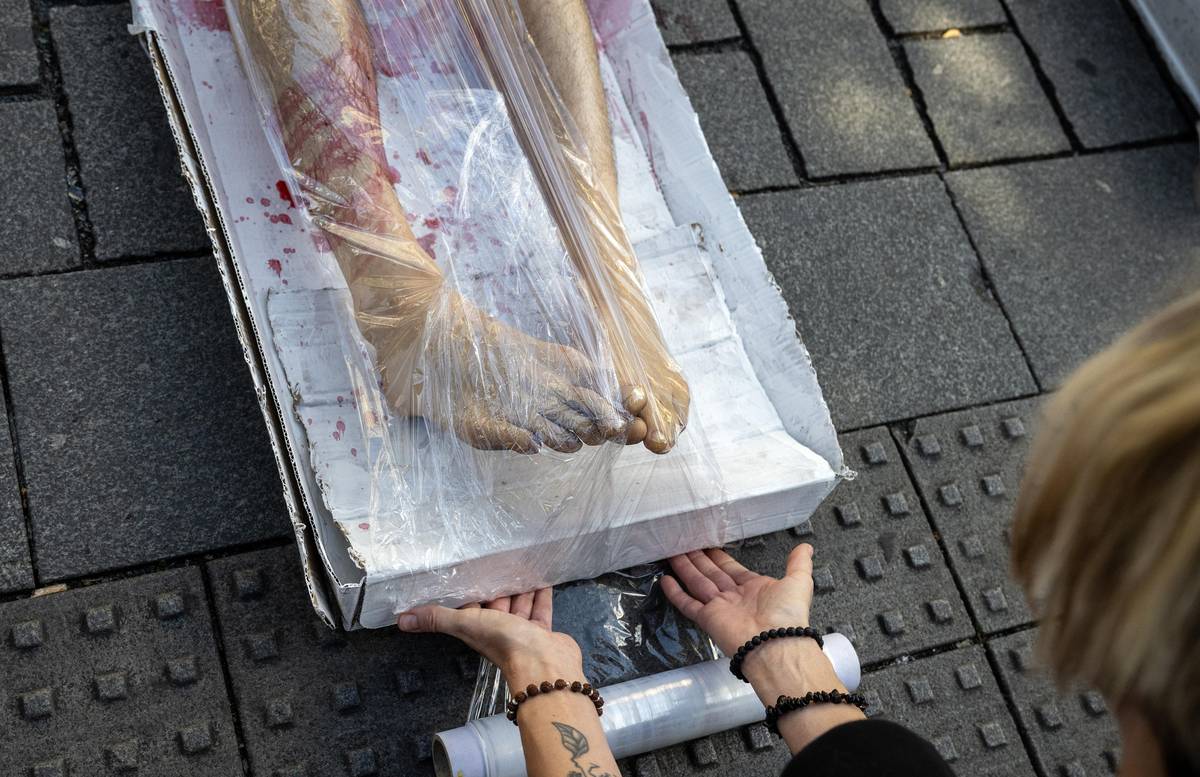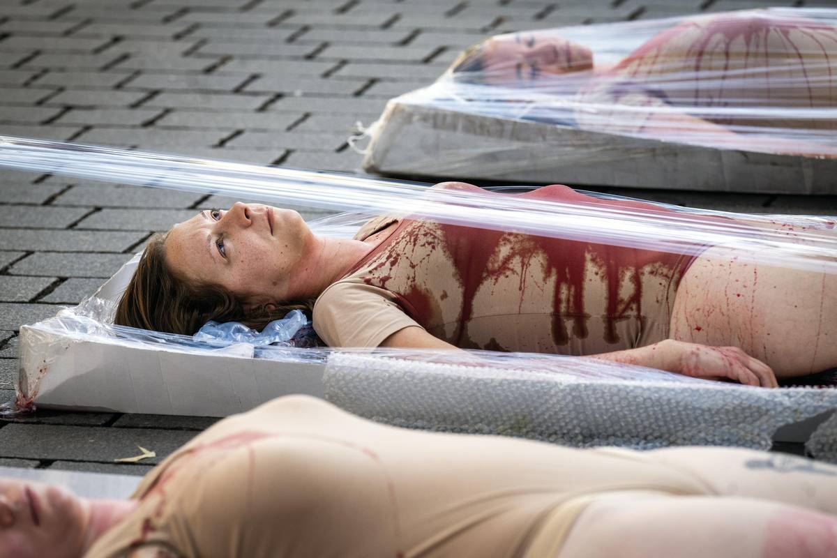 Takto před lidmi leželi aktivisté skoro tři hodiny.