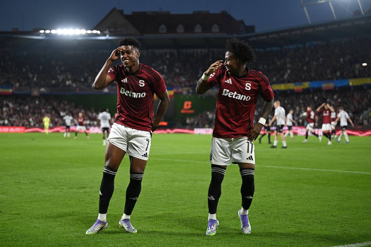 Euforie Mercada (vlevo) potom, co srovnal skóre a připsal si první branku za Spartu