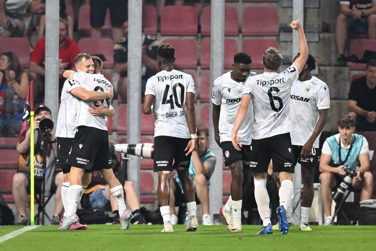 Hráči Plzně slaví první branku ve šlágru se Spartou