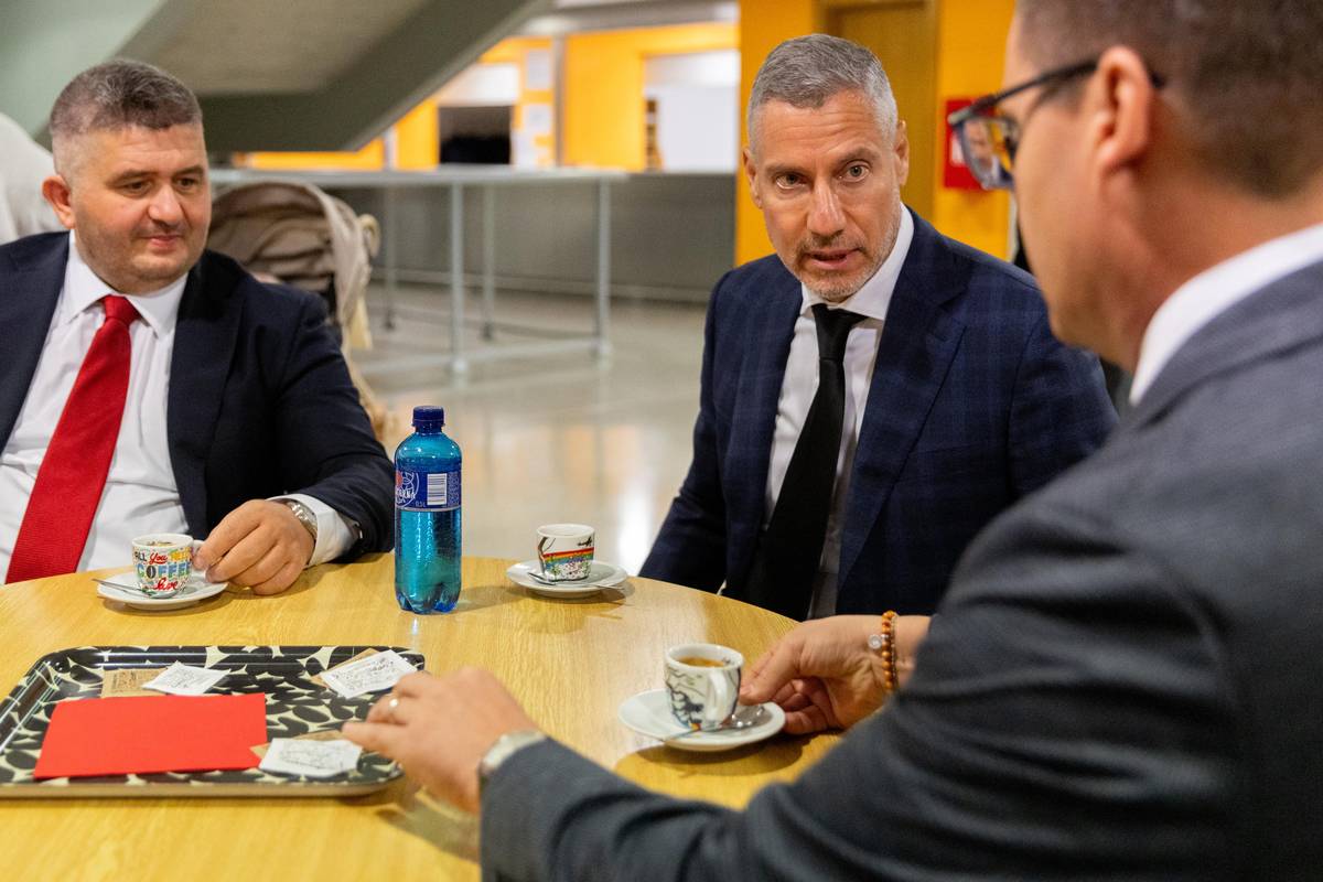 Podnikatel Michal Redl společně s advokáty před jednáním soudu.