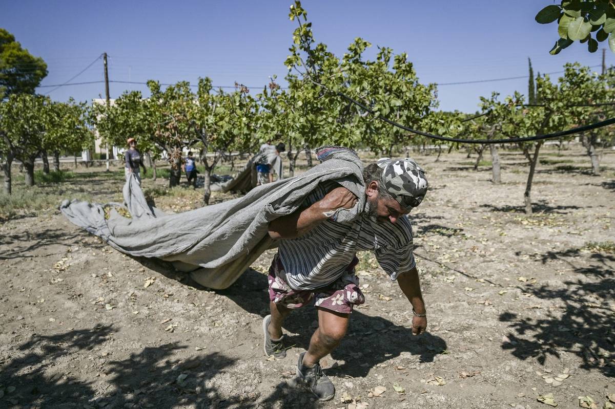 „Pistácií je málo,“ říká agentuře AFP sedmačtyřicetiletý albánský dělník Daso Shpata pod žhavým sluncem na řeckém ostrově Aegina.