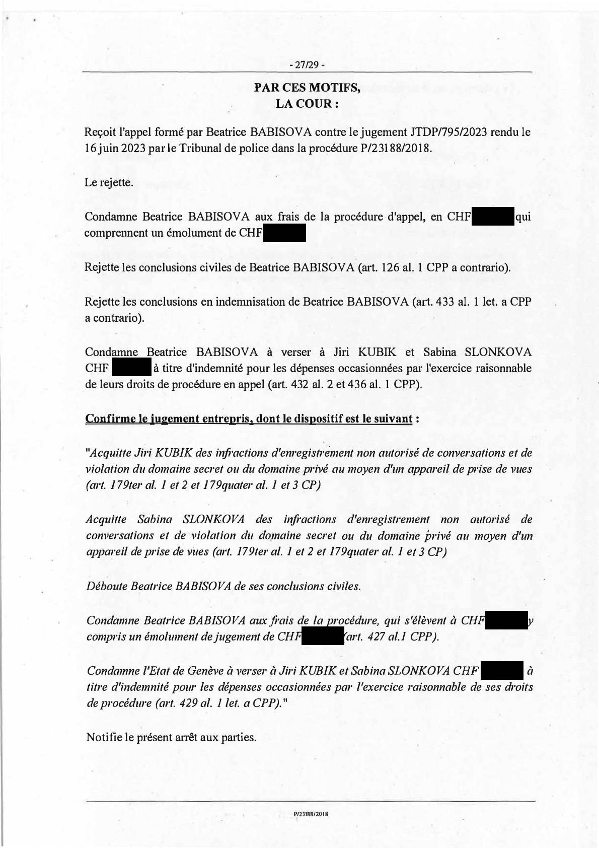 Francouzská verze rozsudku v kauze Babišová - Slonková, Kubík, str. 28.