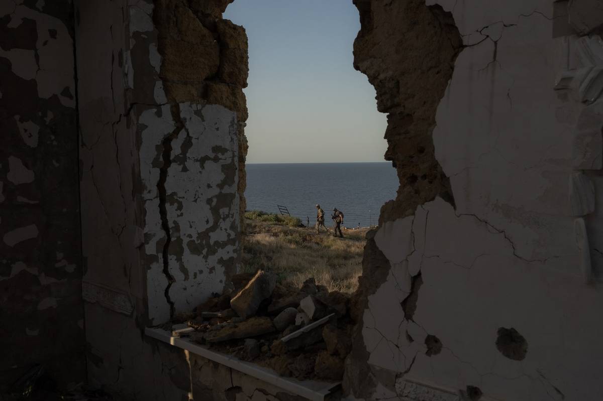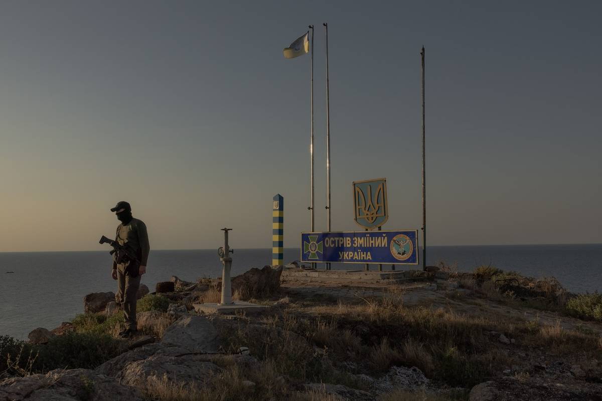 Zákopy protínající východní Ukrajinu jsou odtud stovky kilometrů daleko, ale pro ukrajinské jednotky rozmístěné na Hadím (někdy také Zmijím) ostrově jde o důležité území v Černém moři. (14. srpna)