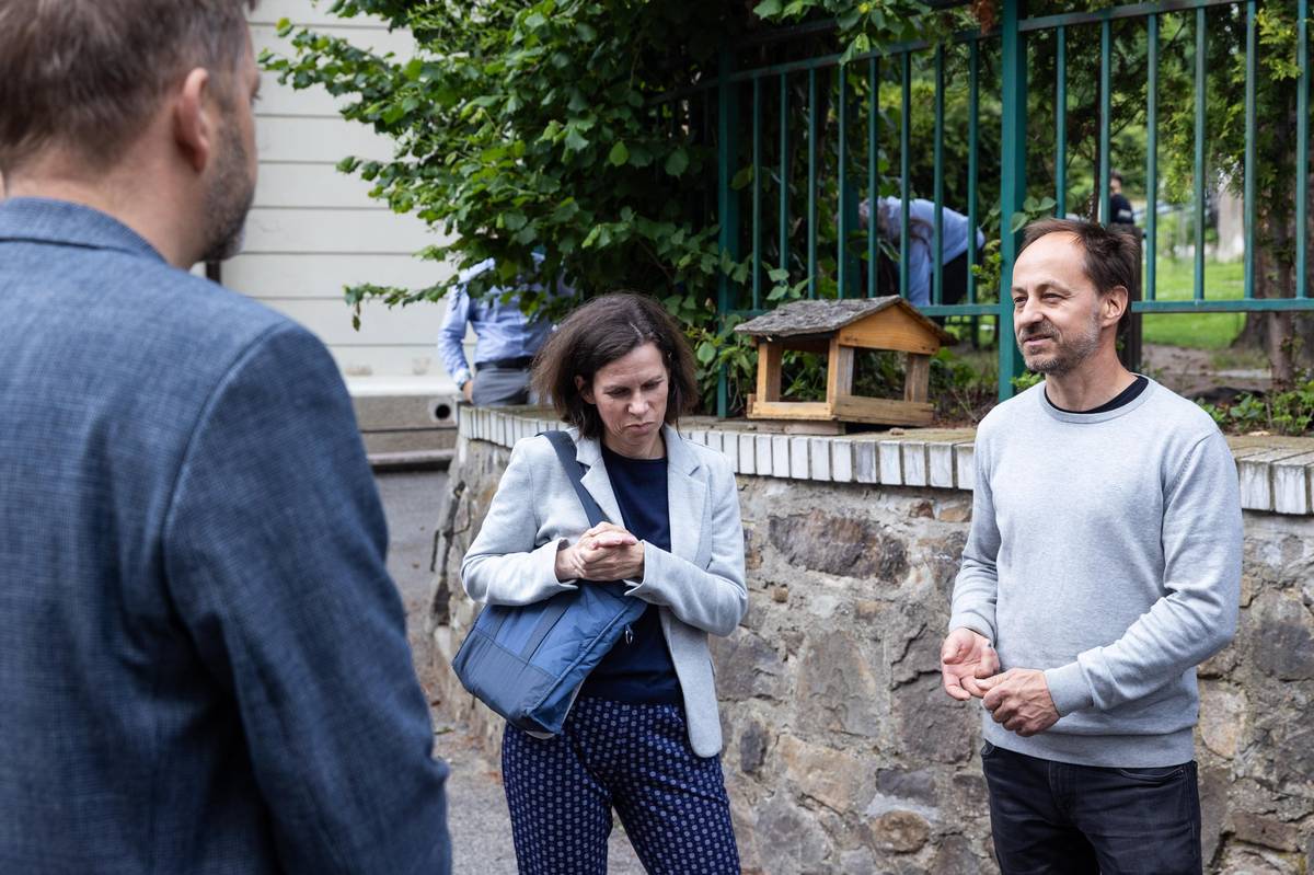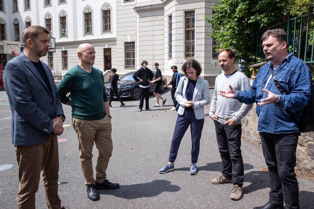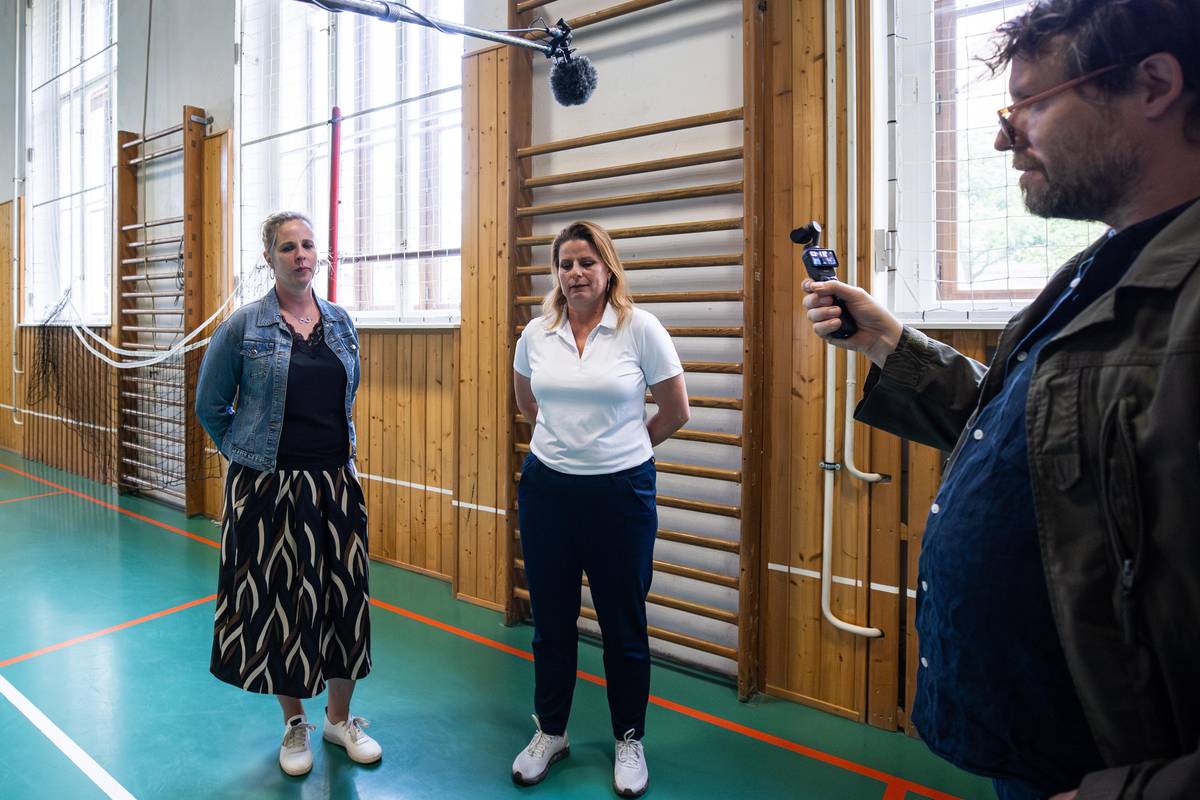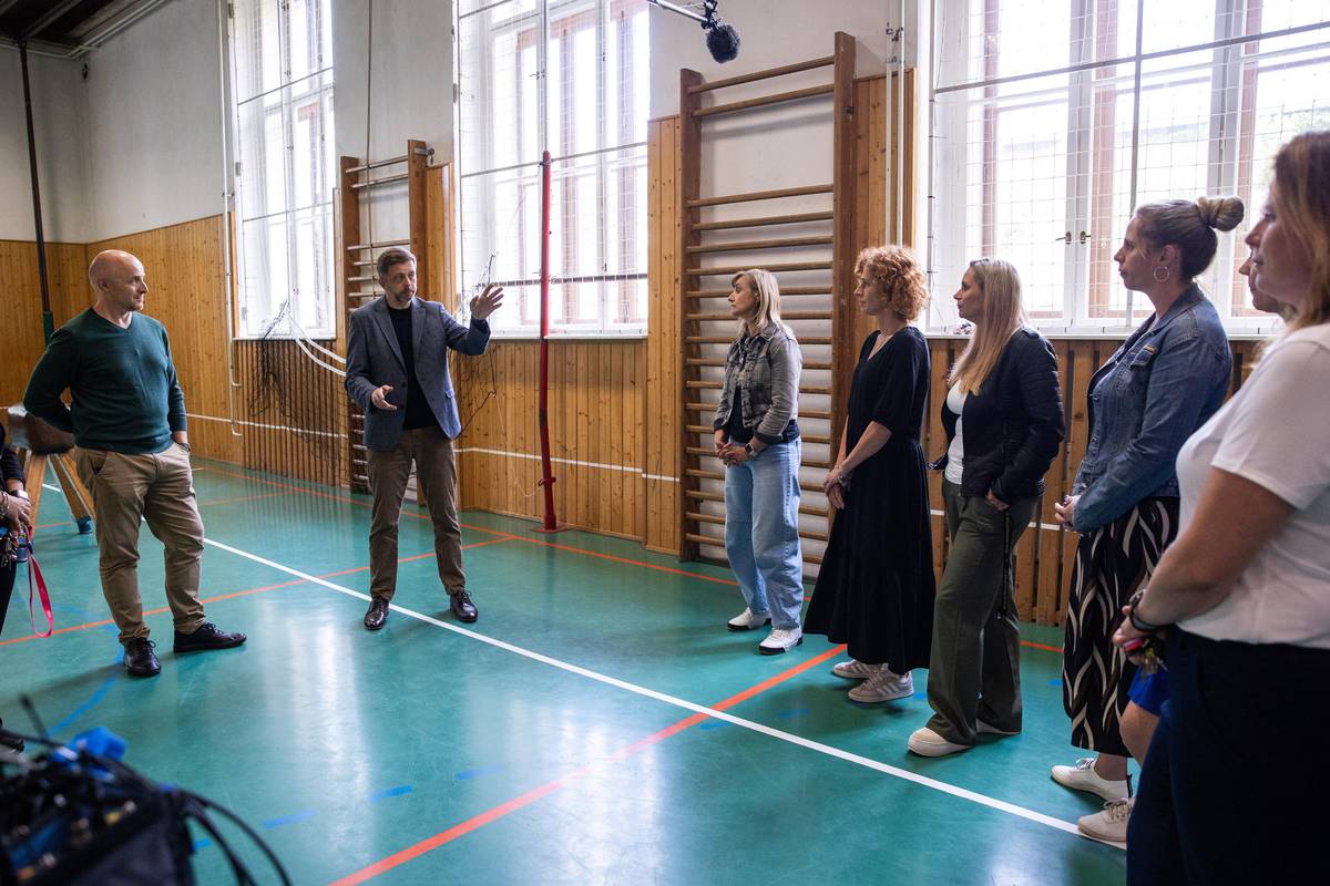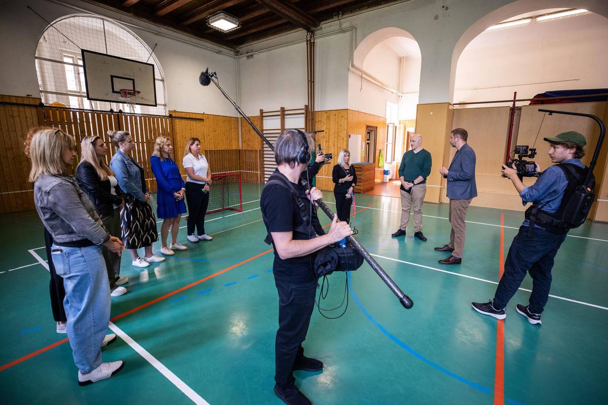 „Jaké jsou vaše dojmy ze setkání se členem vlády,“ ptá se režisér Filip Remunda učitelek Veroniky Hajšmanové a Veroniky Šindelářové.
