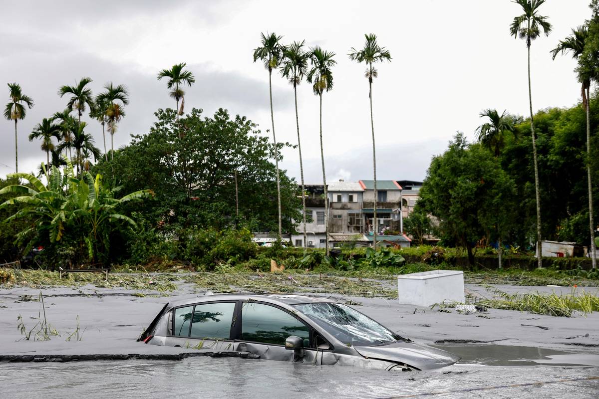 „Voda udeřila jako tsunami,“ prohlásil poštovní doručovatel, kterému se podařilo před přívalem včas uprchnout do druhého patra pošty. (Chua-lien na Tchaj-wanu, 24. září.)