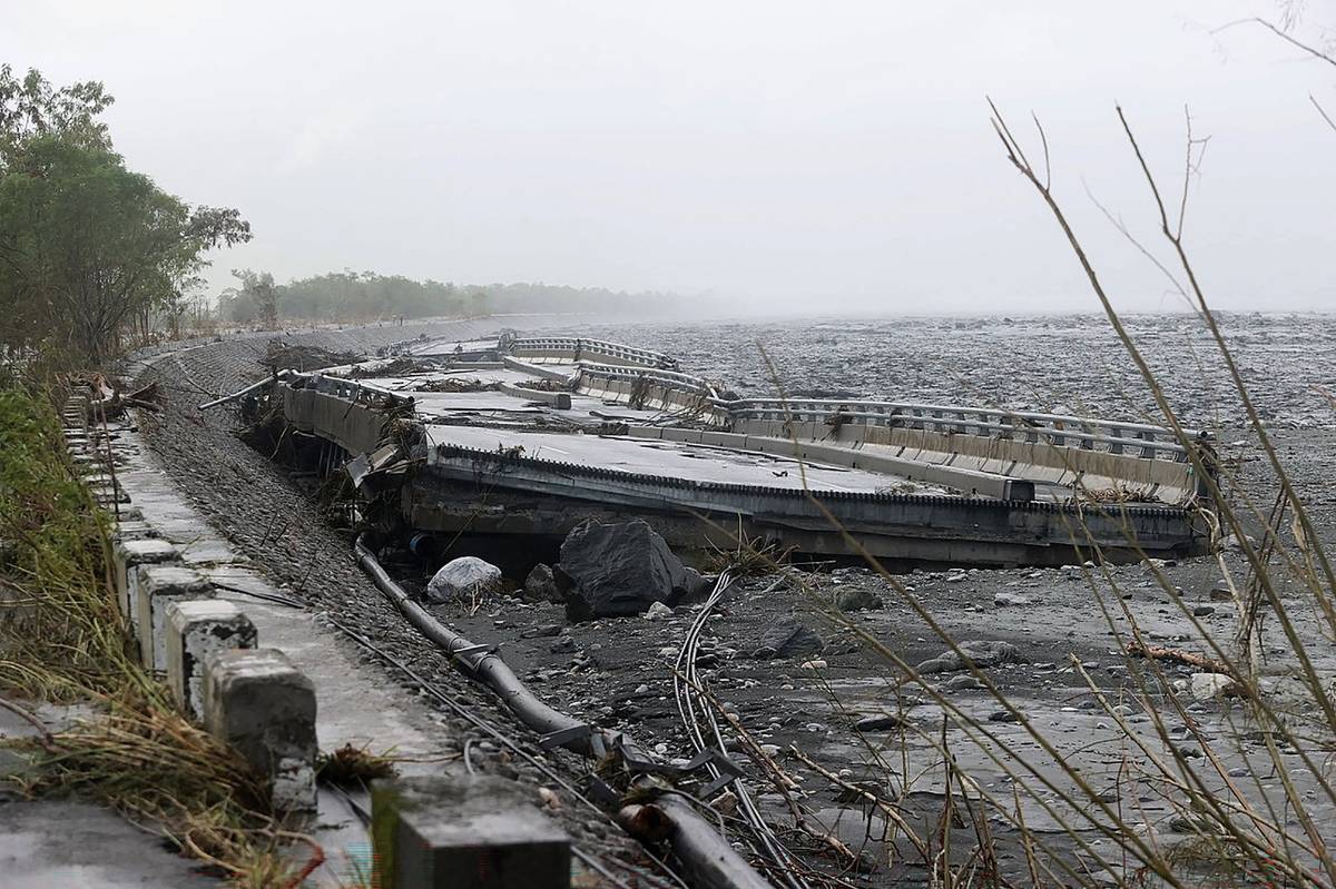 Ve východním okrese Chua-lien se v úterý okolo 9:00 SELČ kvůli sesuvům půdy protrhlo jezero. Voda se následně dostala do přilehlé říčky, strhla most a zaplavila nedaleké město Kuang-fu. (Část zborceného mostu přes Mataian Creek, 24. září.)