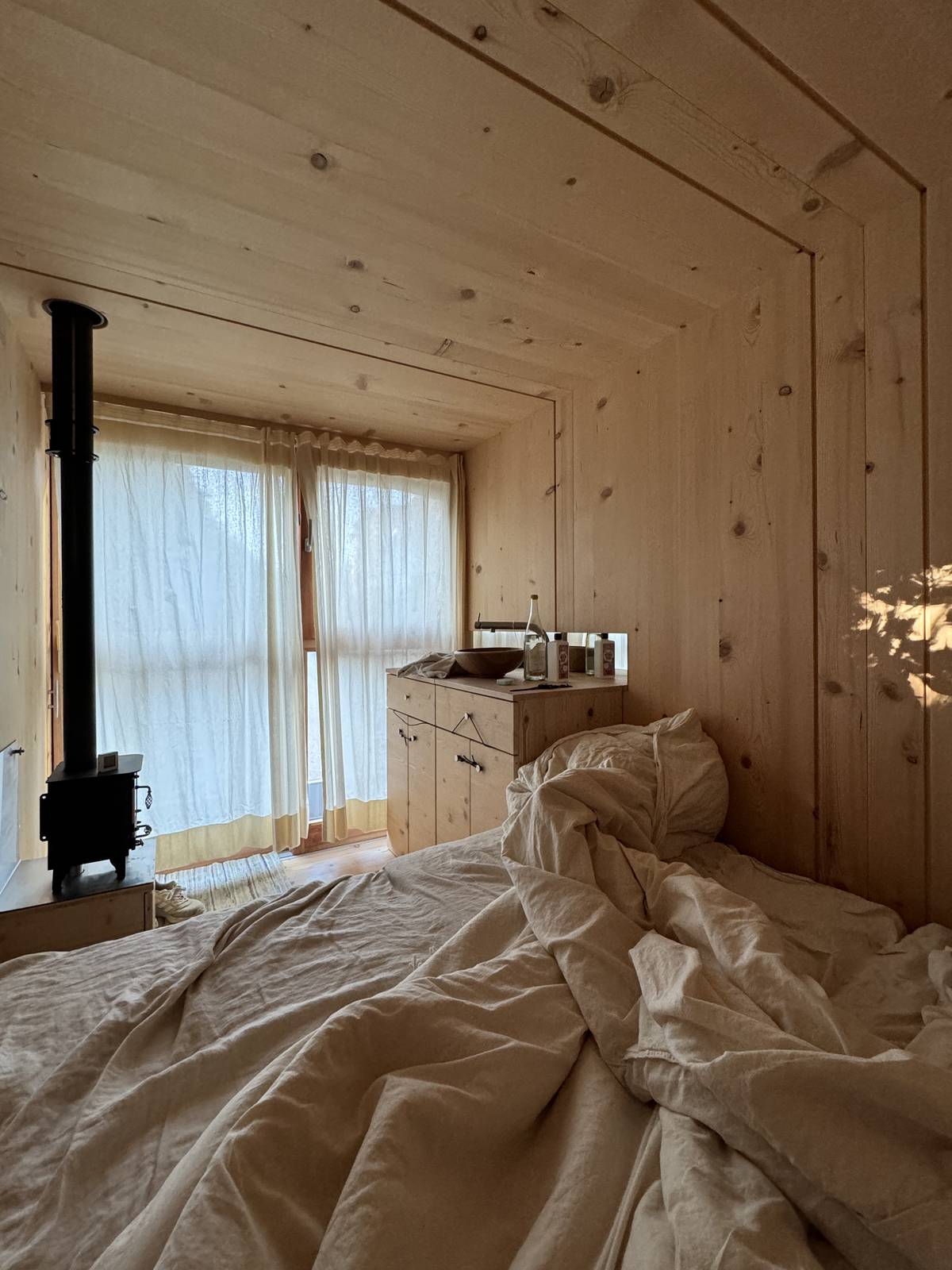 Díky zadním proskleným dveřím je z domku pěkný výhled do okolí. A ten se pak může měnit třeba každý den.