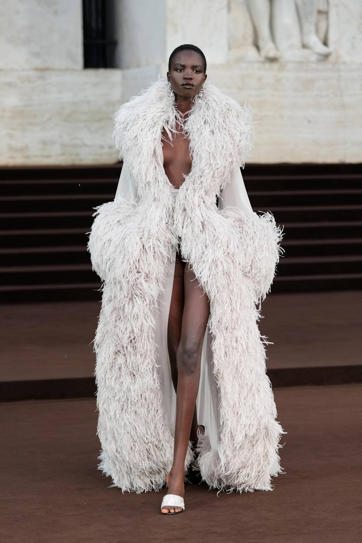 Americká transgender modelka Alex Consani vynesla tygří kožich.