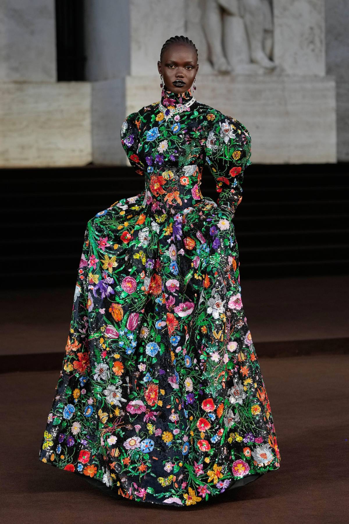 Modelka v šatech z nové kolekce Gucci pro jaro a léto 2026.