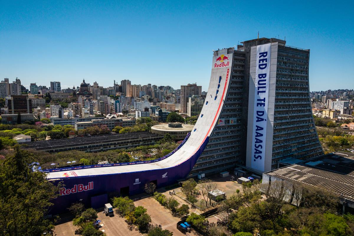 Kancelářská budova v Porto Alegre jako obří skateboardová rampa.