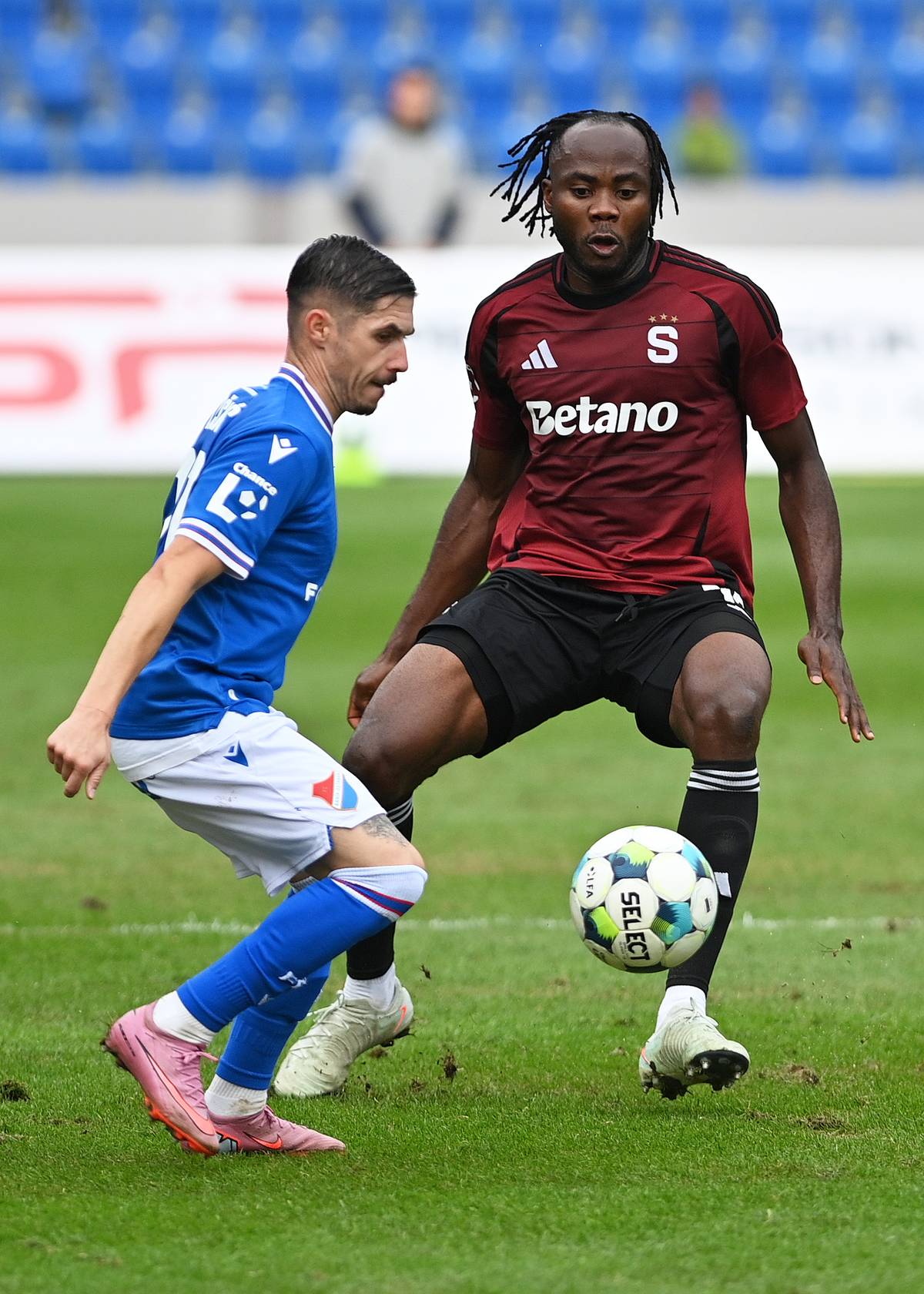 Zleva Srdan Plavšič z Ostravy a Emmanuel Uchenna ze Sparty.