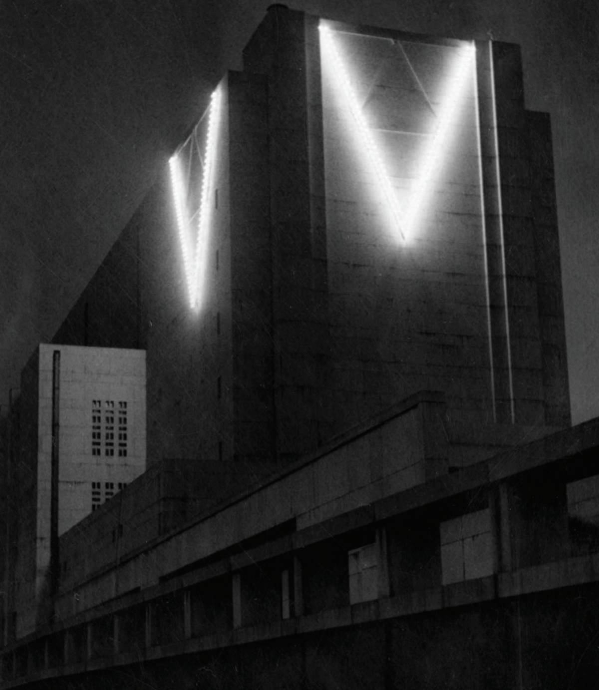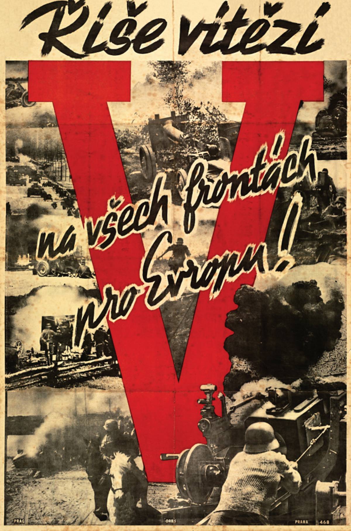 „Viktoria – znamení vítězství“ – „V“ na bývalém Památníku národního osvobození, přeměněném na vojenské skladiště, Praha, červenec 1941