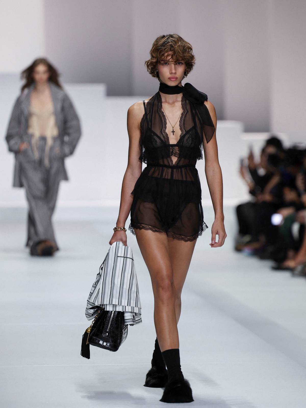 K vidění byly průsvitné modely s černou krajkou.