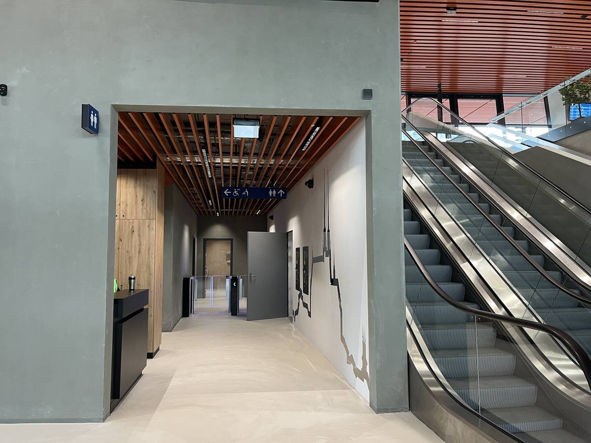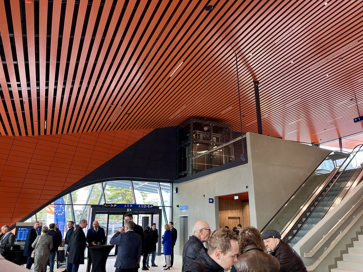 Nová dvoupatrová budova nádraží svou konstrukcí připomíná vlny.