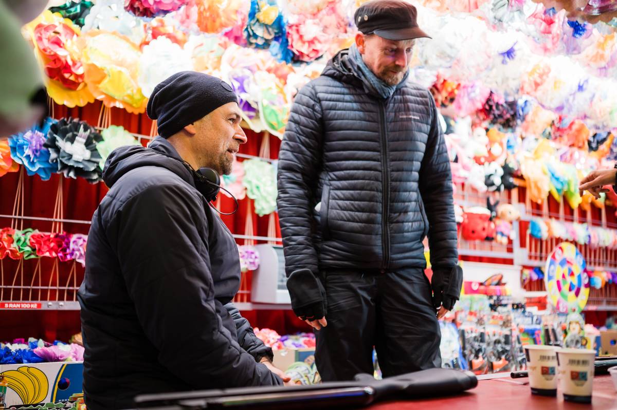 Zápisník alkoholičky, režisér Dan Svátek (vlevo) a natáčení na pražském Výstavišti