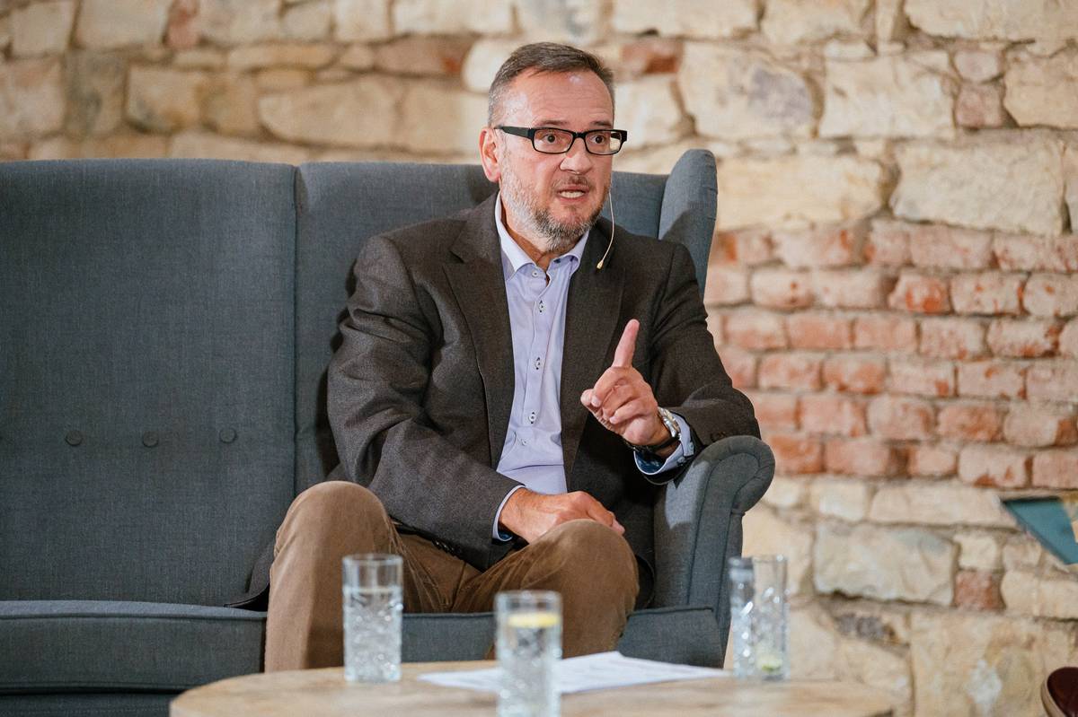 Herec Michal Novotný ve volebním studiu Seznam Zpráv.