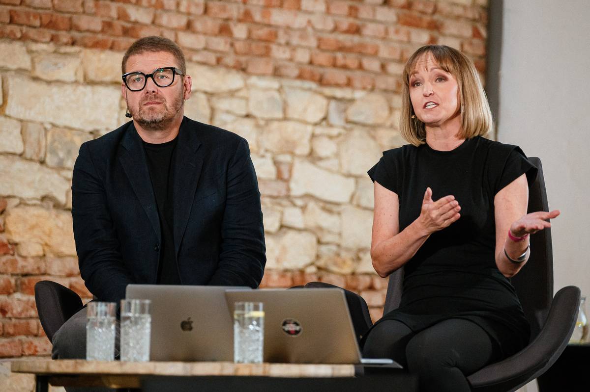 Moderátoři volebního studia Seznam Zpráv - Marie Bastlová a Jindřich Šídlo