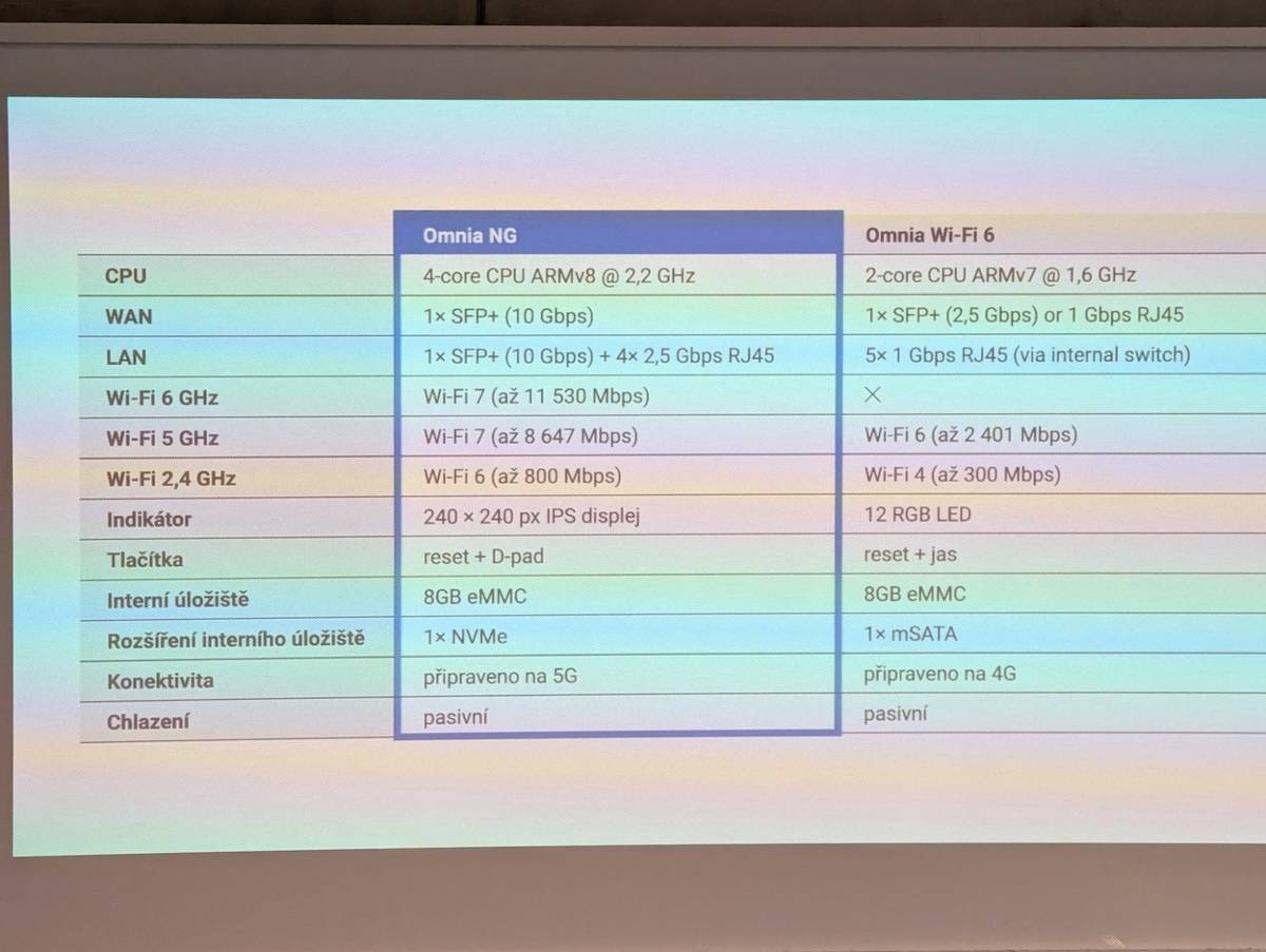Parametry Turrisu Omnia NG ve srovnání s předchozím modelem