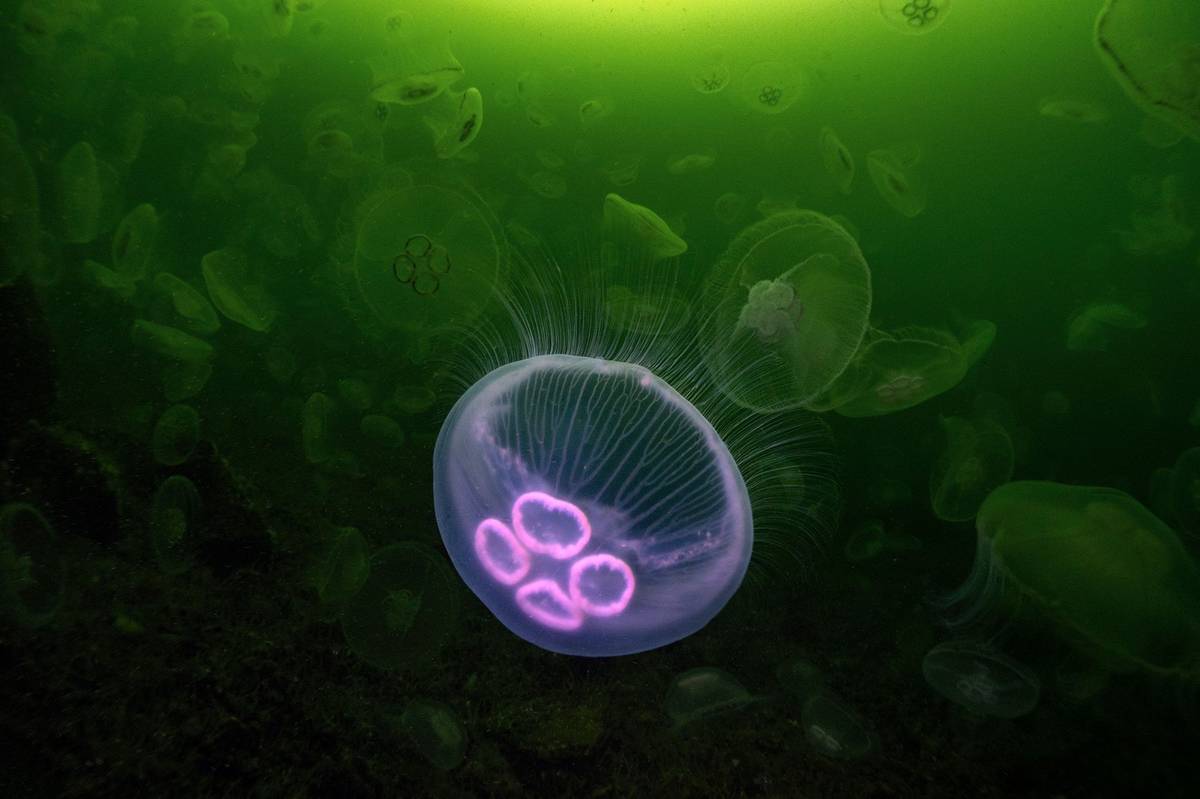 3. místo v kategorii V britských vodách, makrofotografie: Sandra Stalkerová (Velká Británie) - V říši měsíčního svitu.( Sony A7R IV, podomácku vyrobený Trioplan 50, ISO 50, f/2,9, 1/320 s, osvětlení Backscatter miniflash, podvodní pouzdro Nauticam).