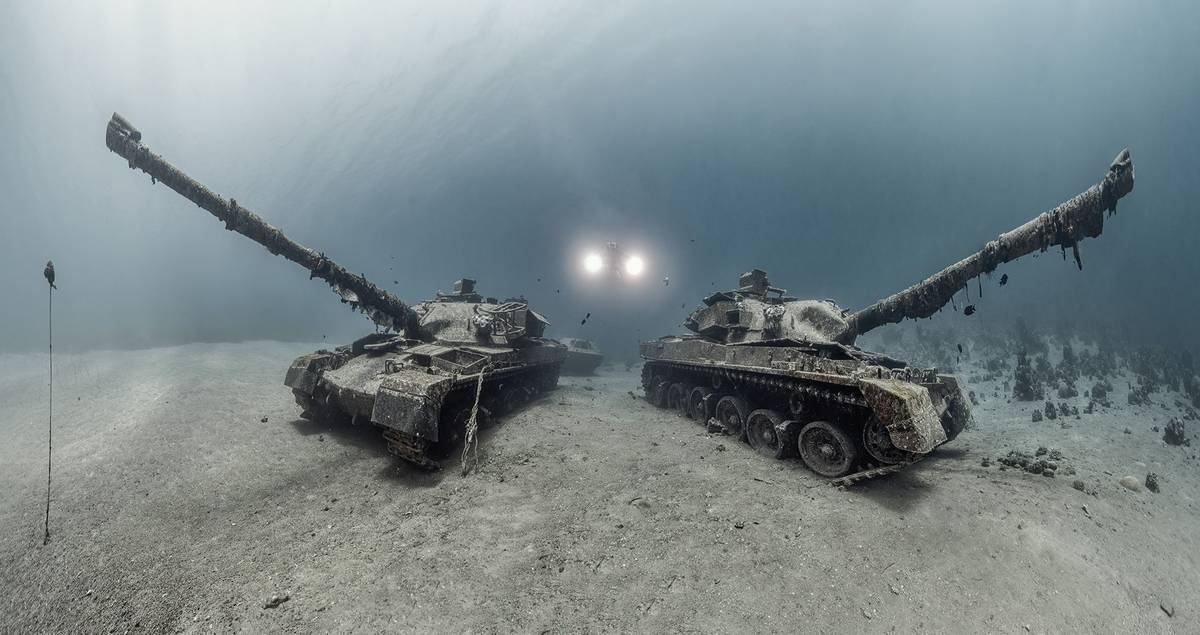 Vítěz v kategorii vraky: Martin Broen (USA) - Tanky Chieftain. (Sony A1, Canon 8-15 mm, ISO 1600, f/9, 1/100 s, osvětlení 2x BigBlue 33000, podvodní pouzdro Nauticam A1).