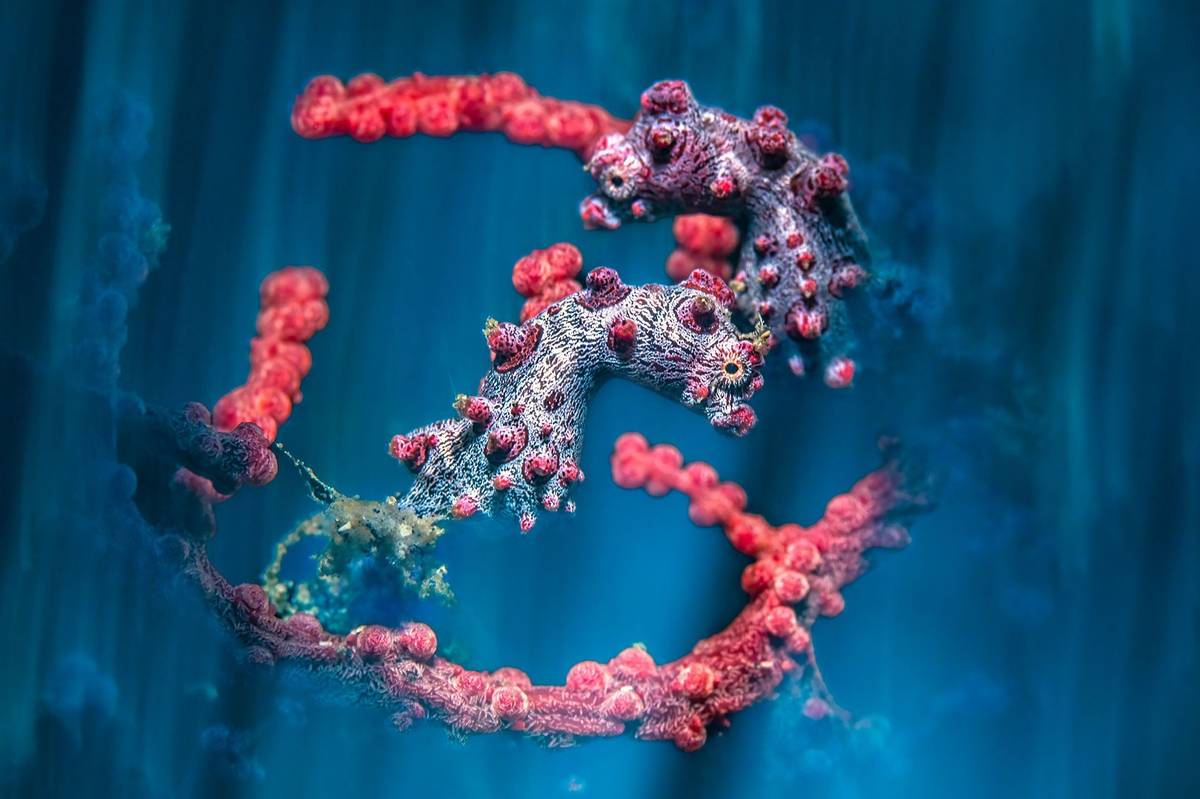3. místo v kategorii Makrofotografie: Byron Conory (Island) - Dva drobní mořští koníci pygmy. (Canon 5D MkIV, Canon 100mm, ISO 800, f/11, 0,3 s, osvětlení Retra Pro, podvodní pouzdro Nauticam NA5d).