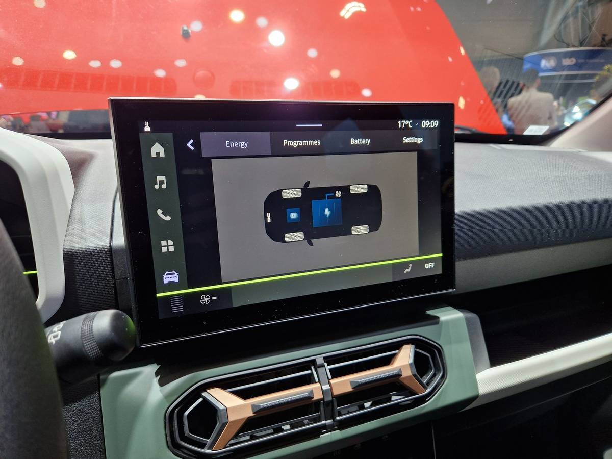 Desetipalcová obrazovka je standardní výbavou všech Springů, sledovat na ní lze třeba tok energie. Nově je displej volně stojící.