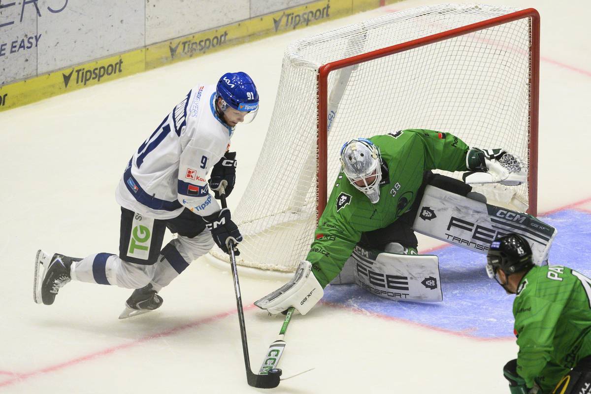 Brankář Mladé Boleslavi Dominik Furch se svou helmou.