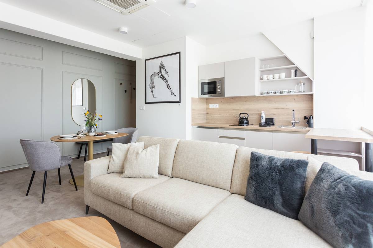 V hotelovém pokoji na PCG Vinoř ozvláštnily stěny dekorační lišty a obrazy mladých umělců.