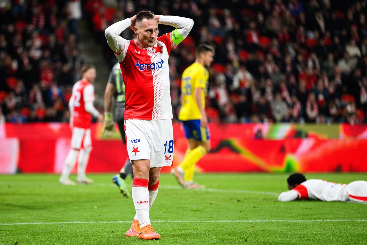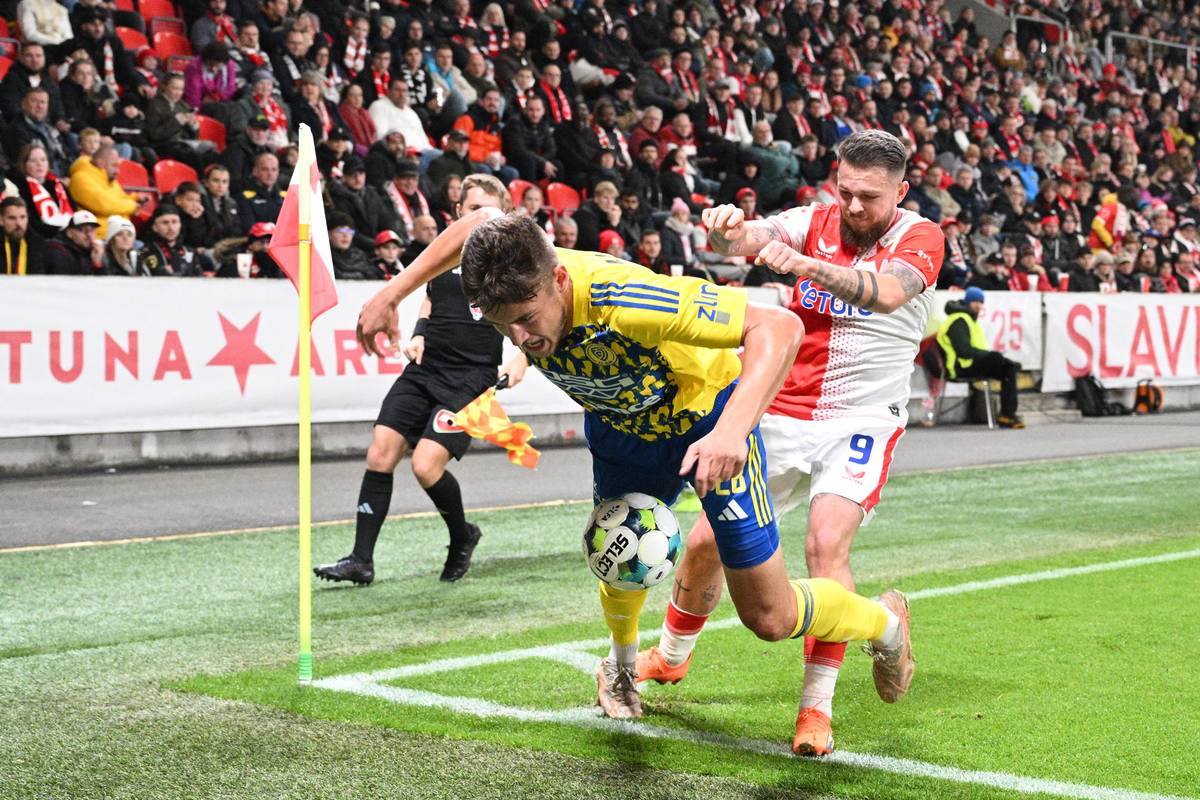 Jan Bořil ze Slavie Praha během utkání se Zlínem.