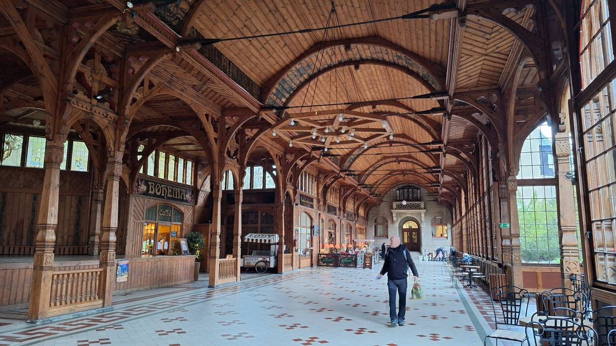 Dřevěná prosklená chodba v Lázeňském domě ve Świeradówě-Zdróji.