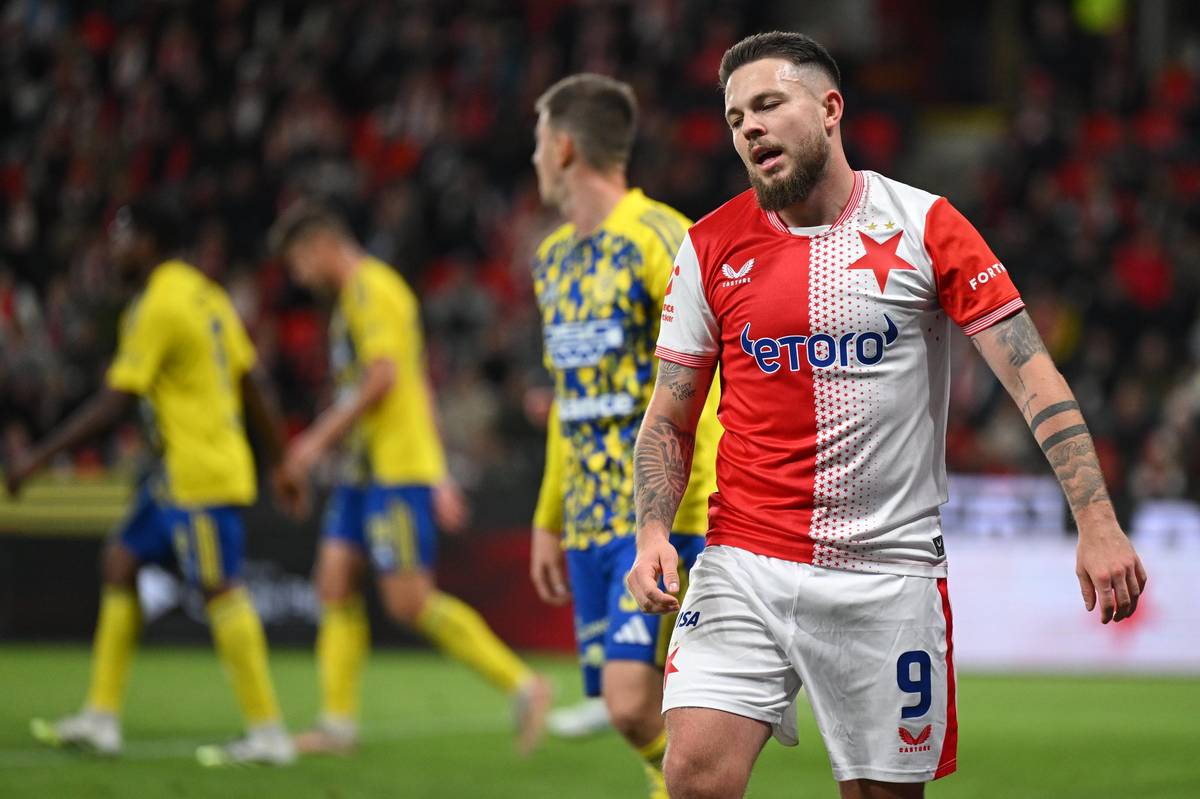 Slávista Vasil Kušej během zápasu se Zlínem.