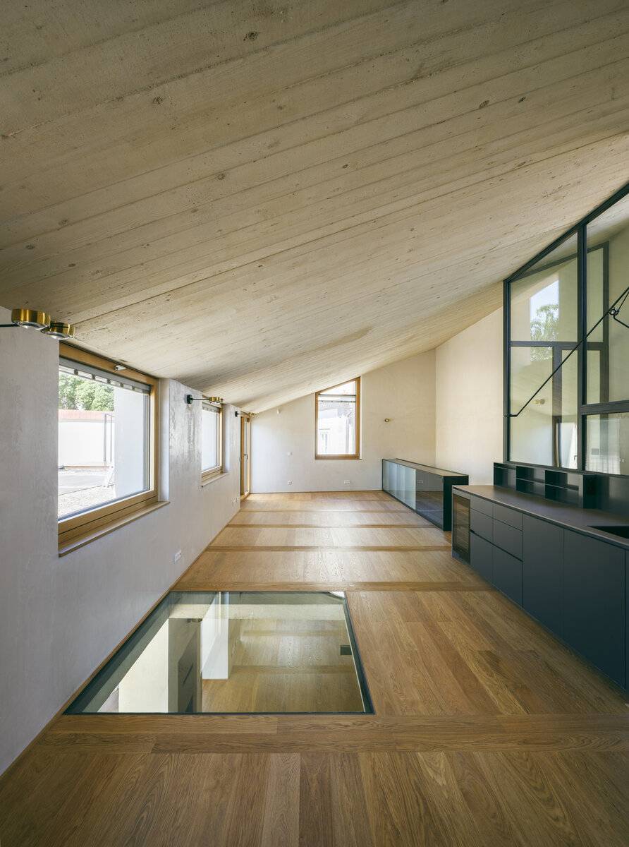 Stavba tvarově dobře ladí s okolními historickými budovami.