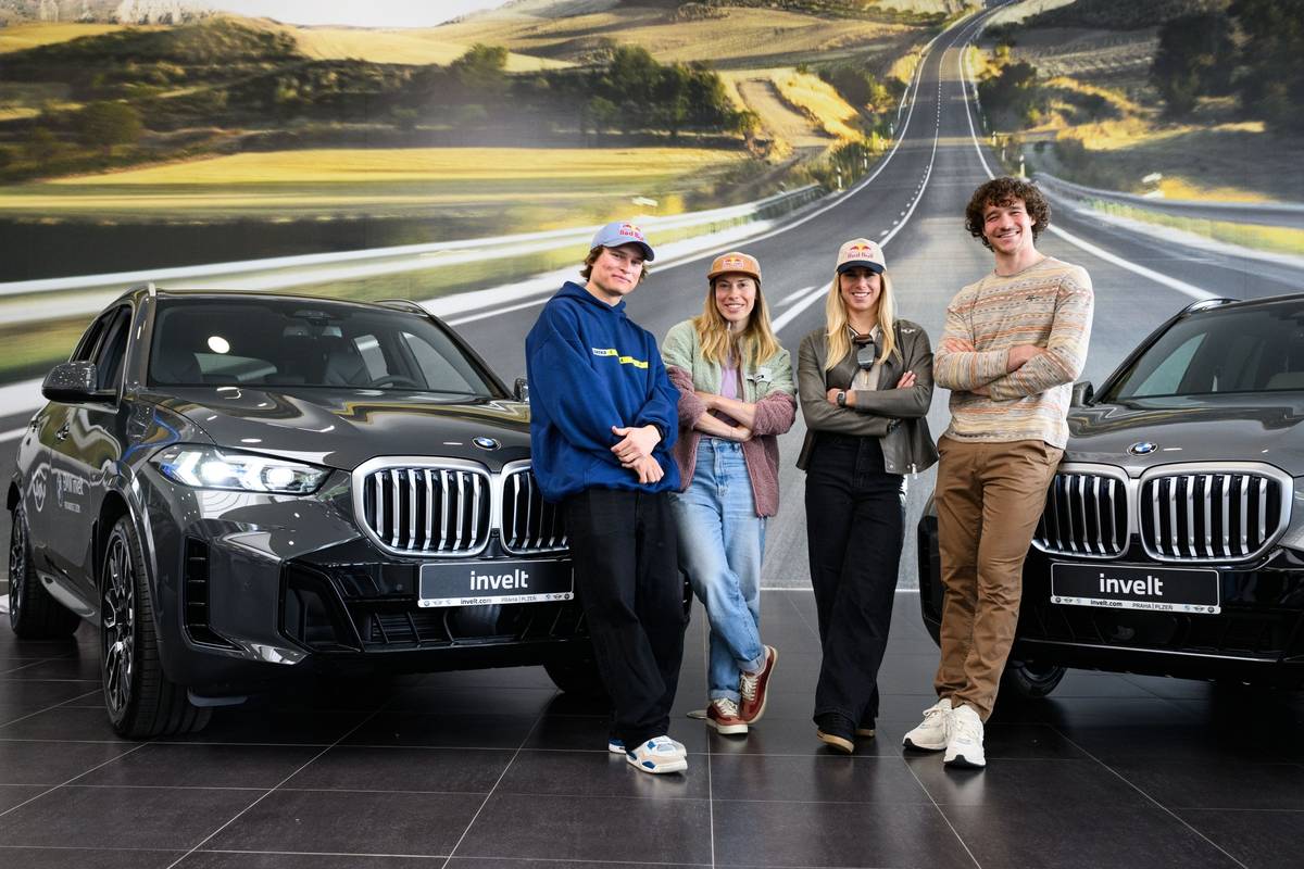 Jakub Hroneš, Eva Adamczyková, Ester Ledecká a Jan Zabystřan v BMW invelt.