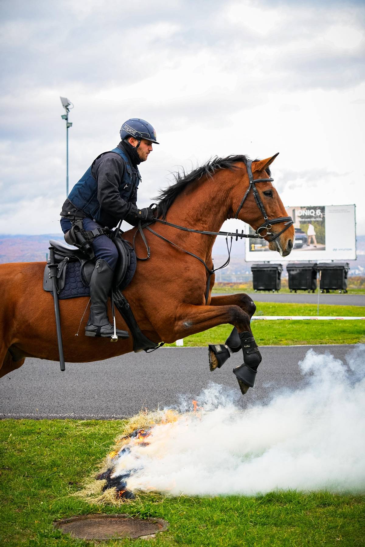 A také jízdní policie, která ukázala činnost typickou při monitorování fotbalových fanoušků.