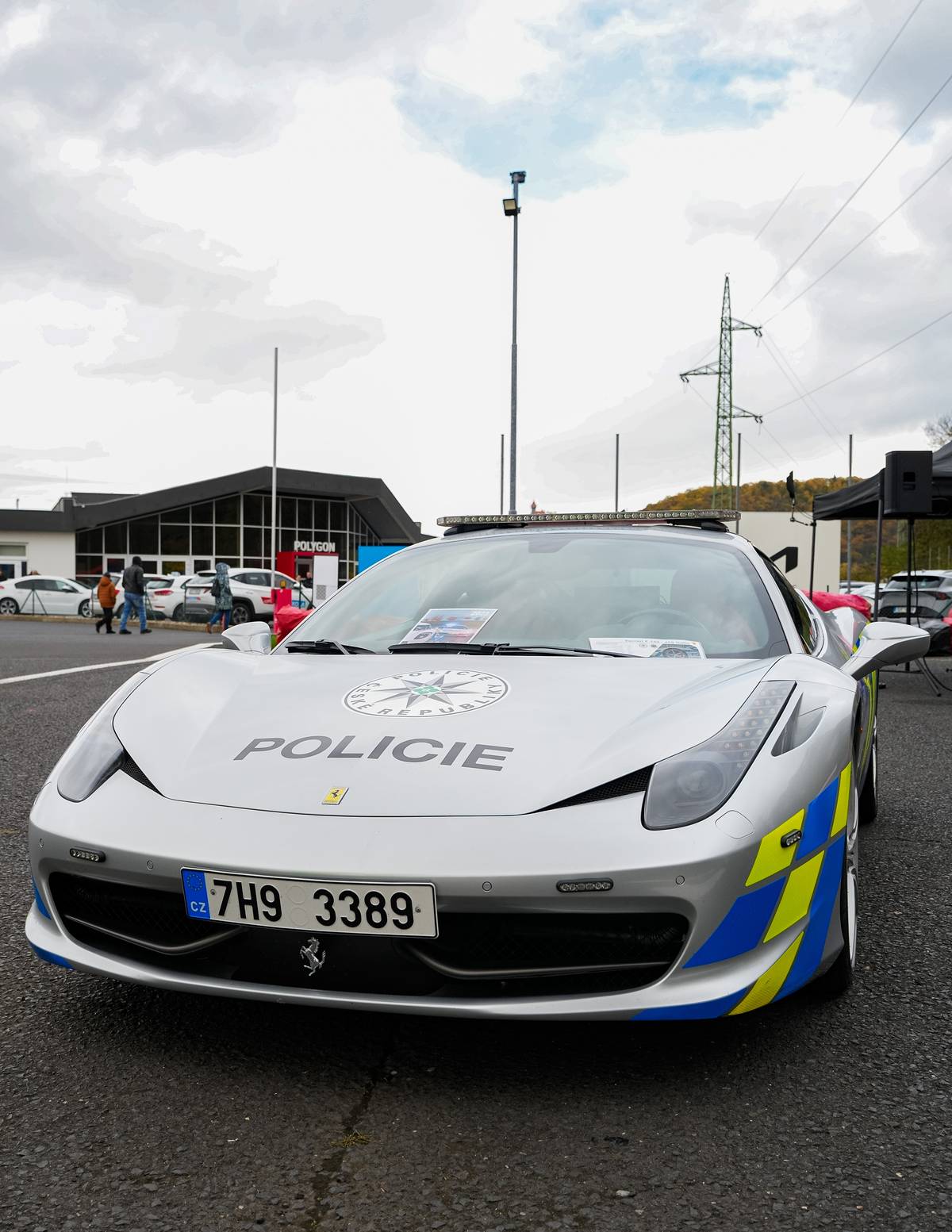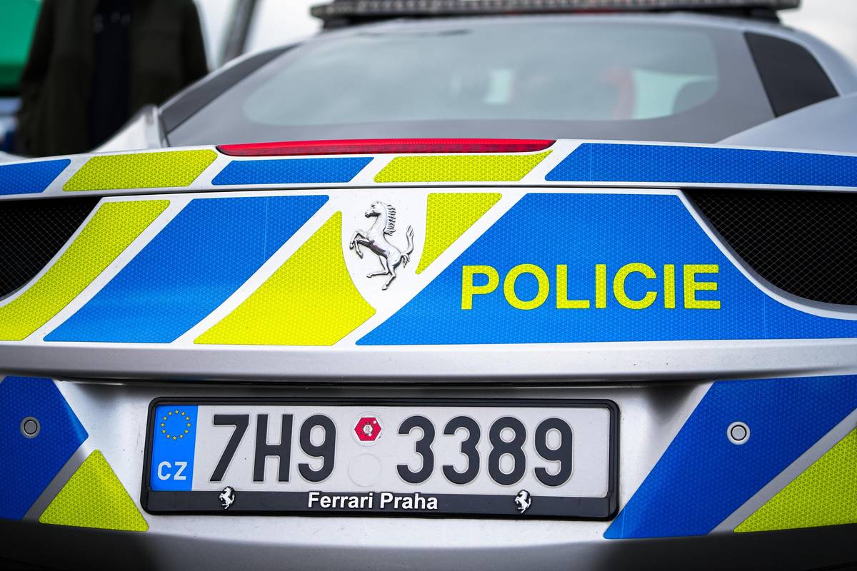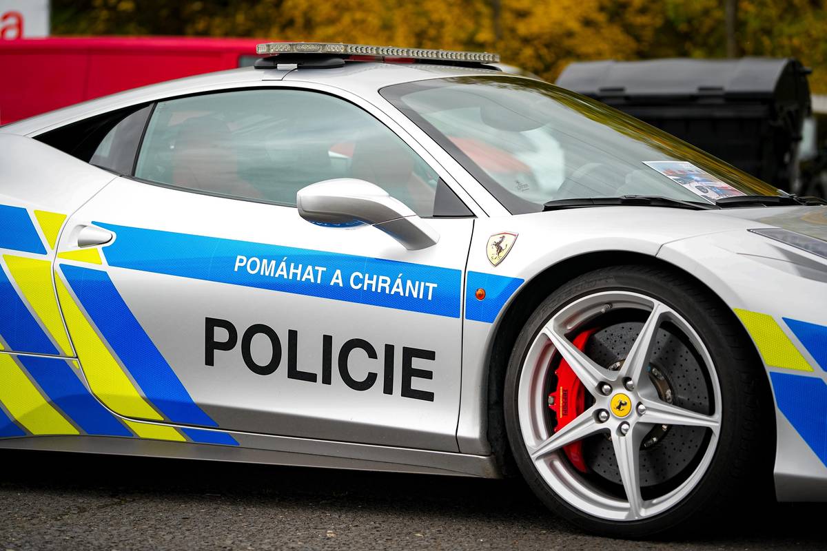 Oproti běžným policejním škodovkám Ferrari přitahuje pozornost.