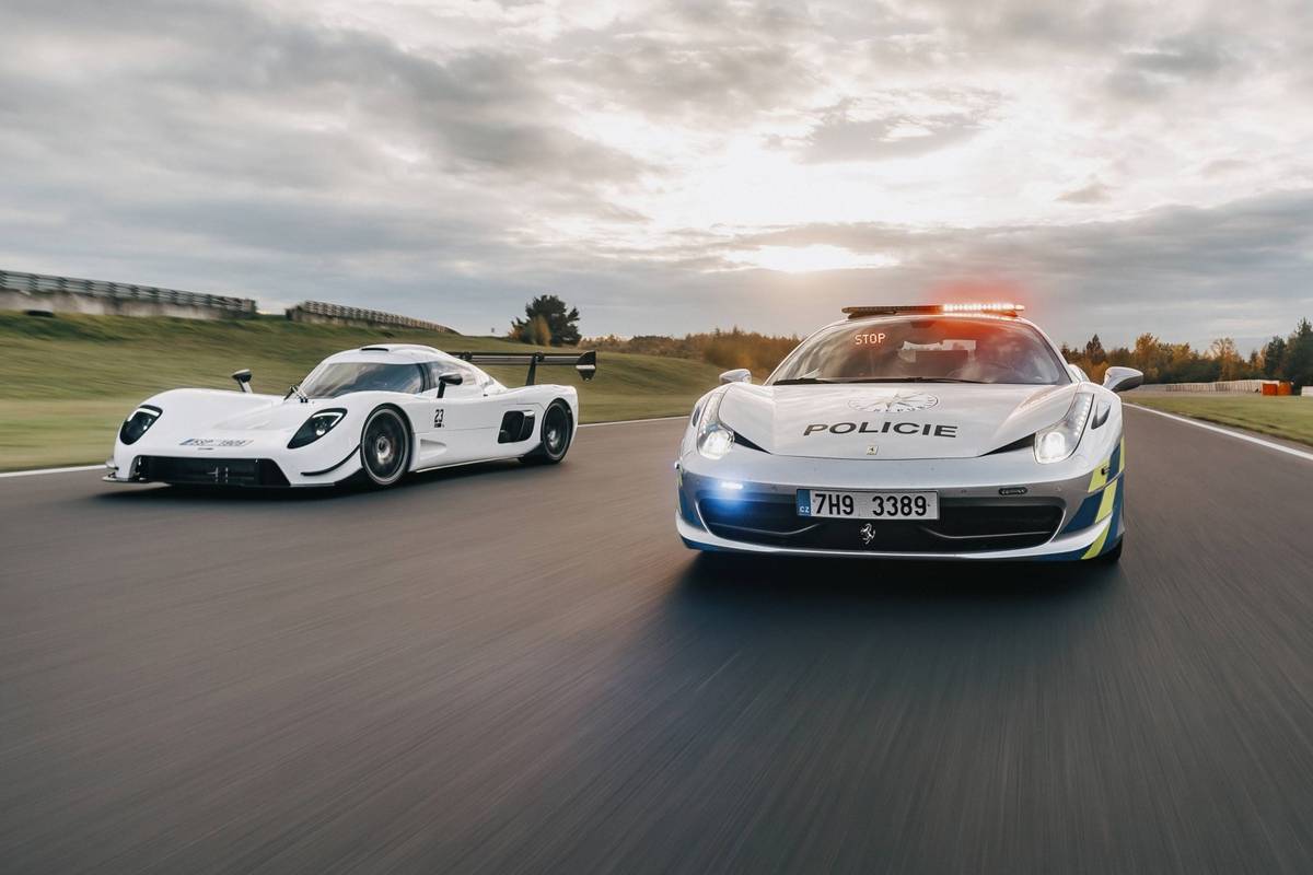 Ferrari při ukázce stíhání jiného auta.