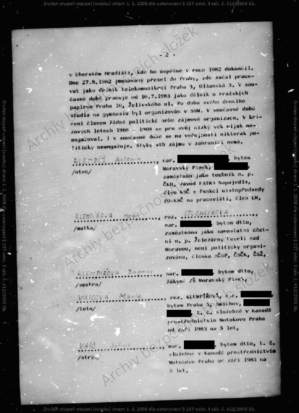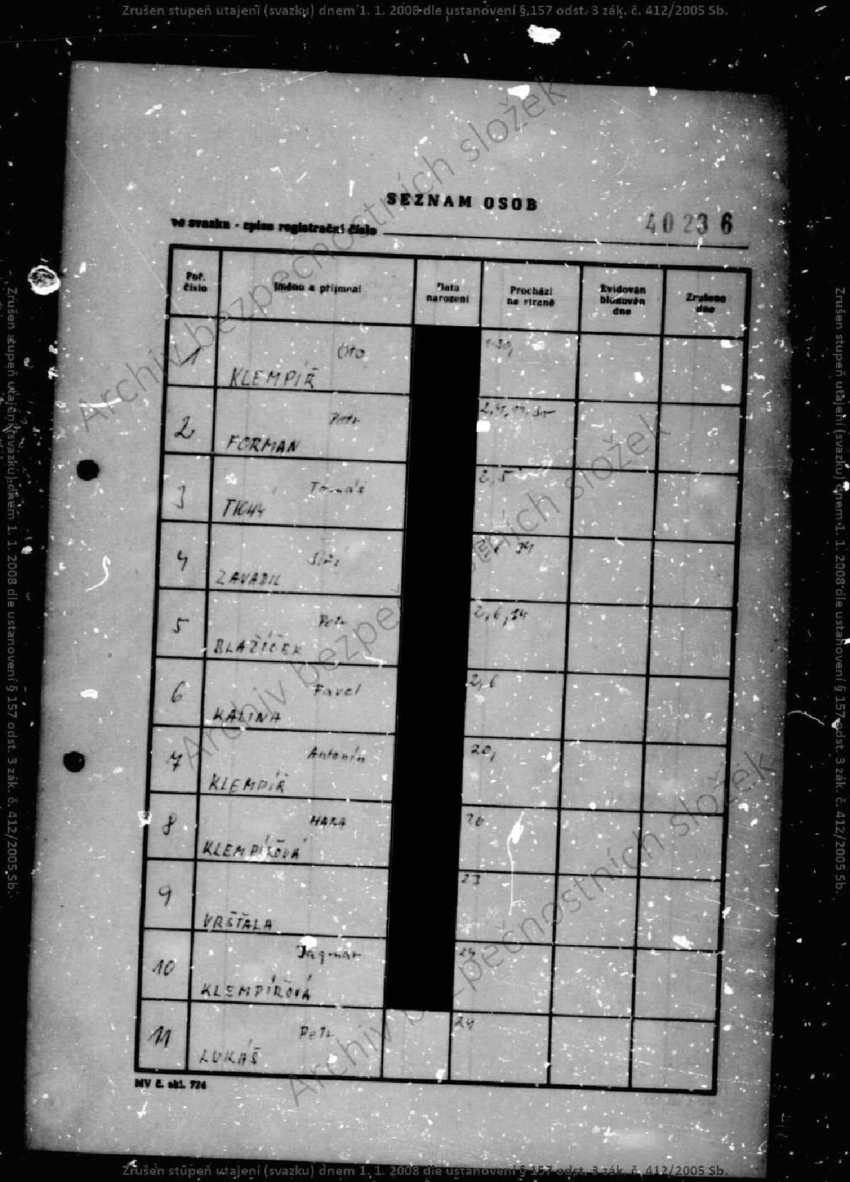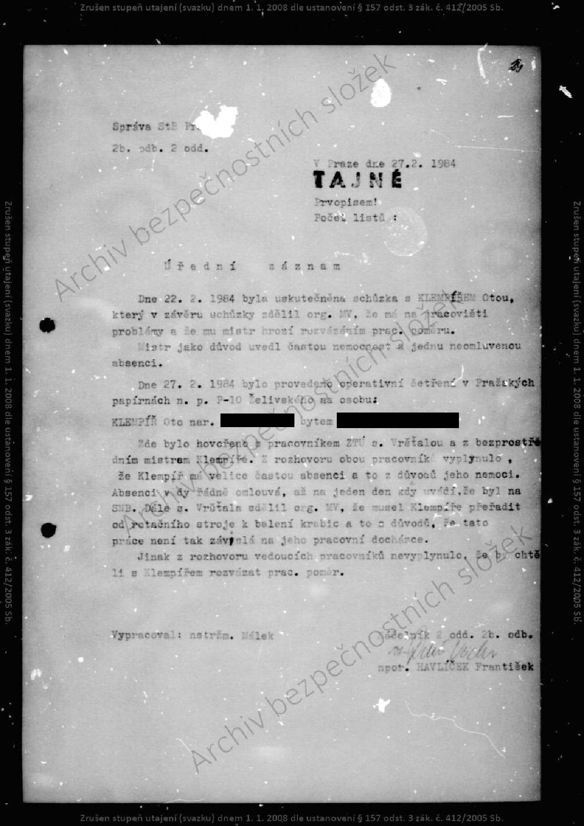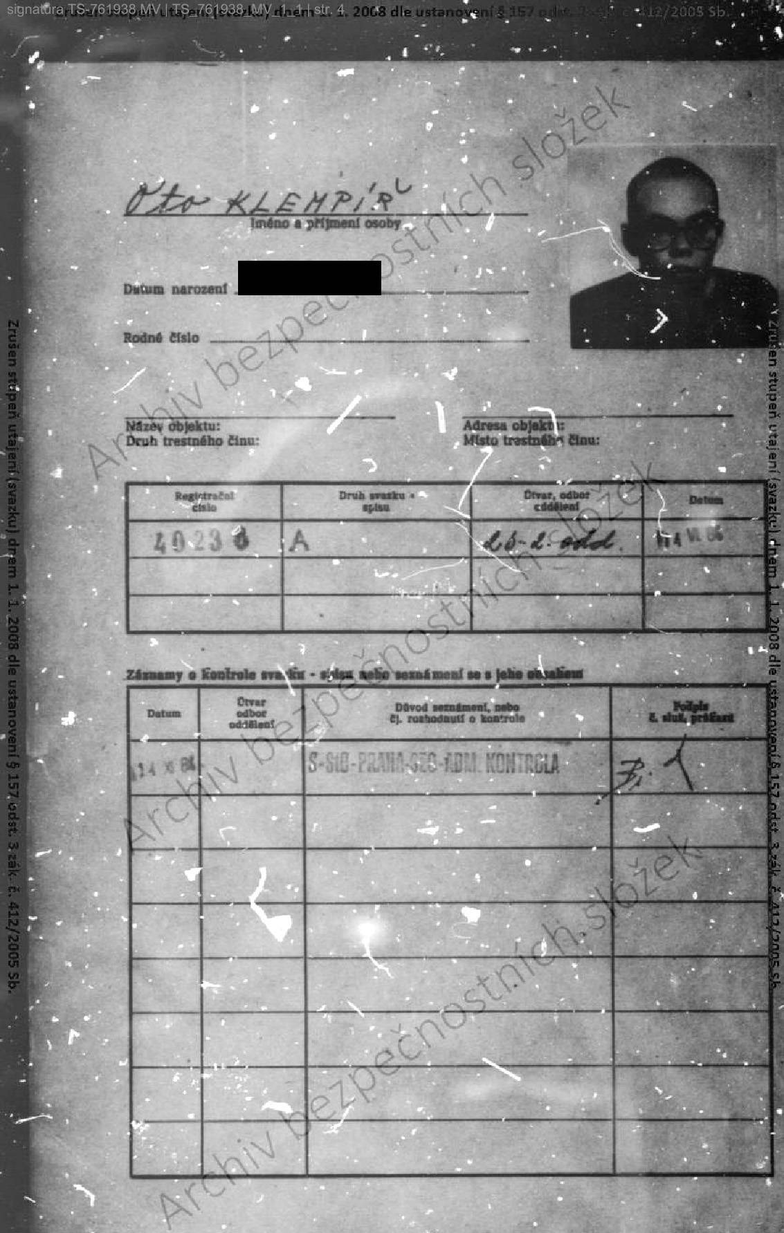 Oto Klempíř – svazek STB.
