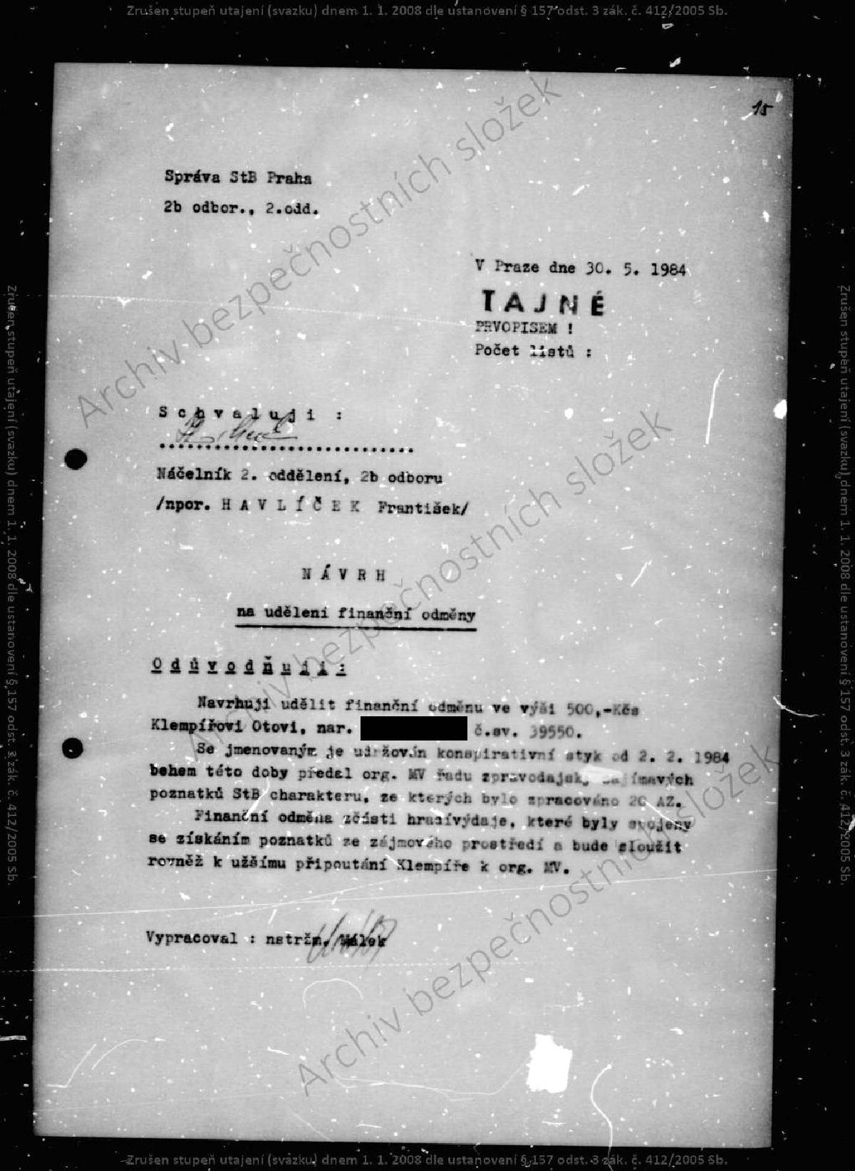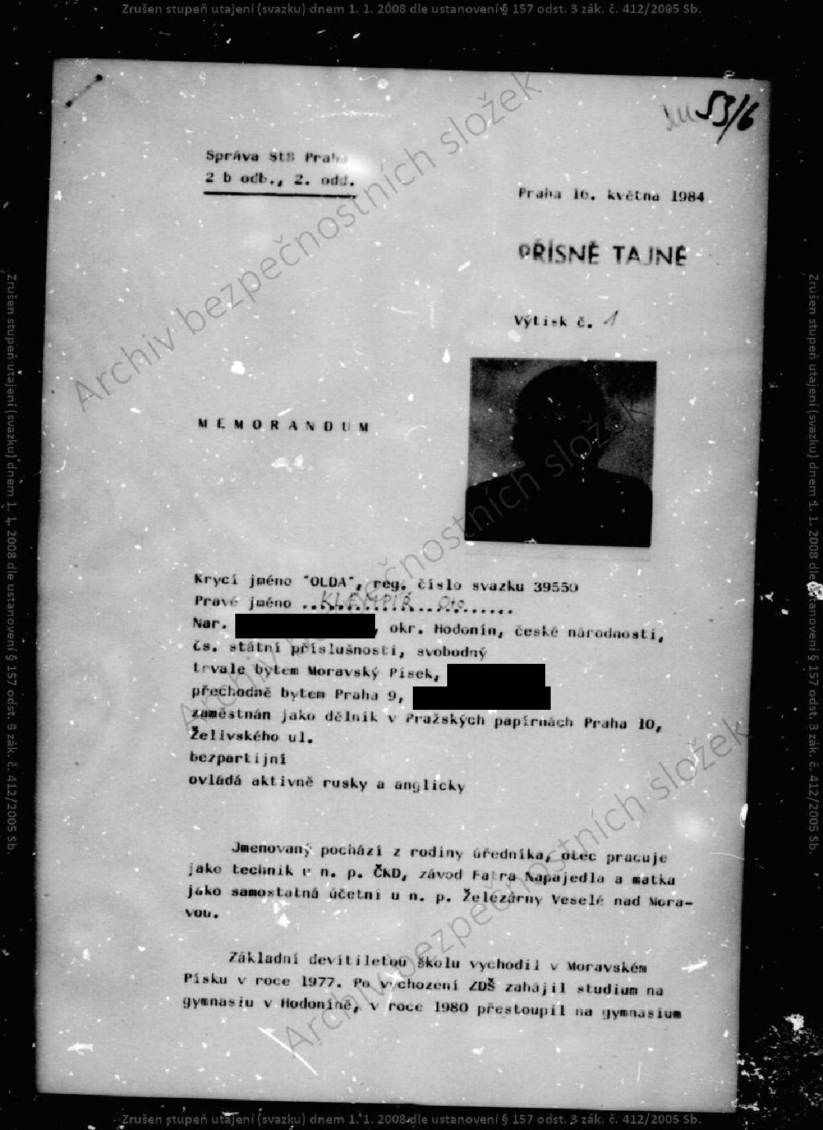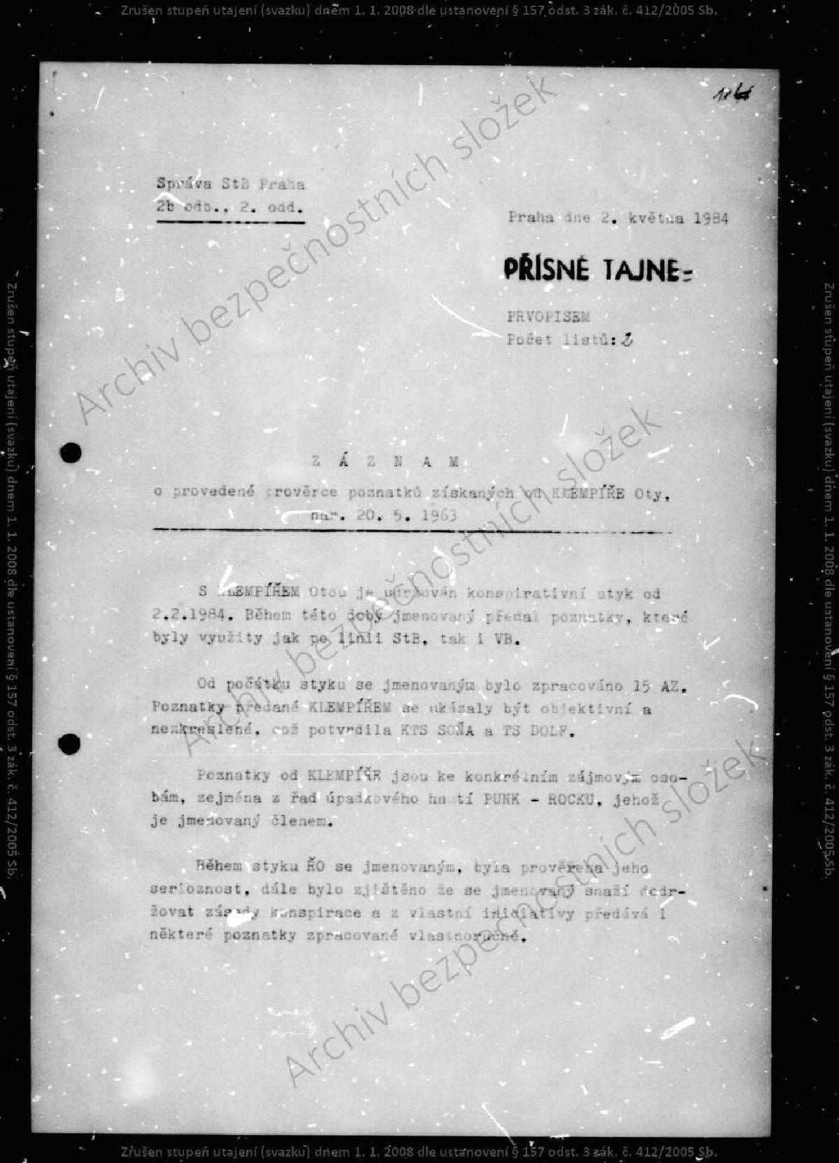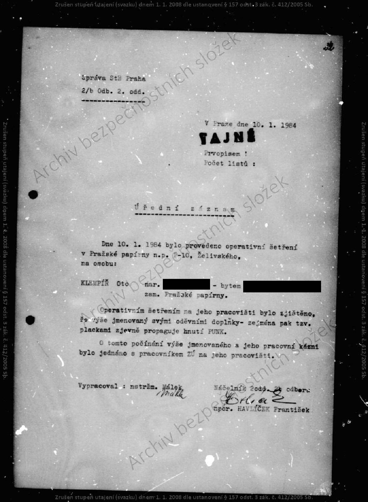 Oto Klempíř – svazek STB.