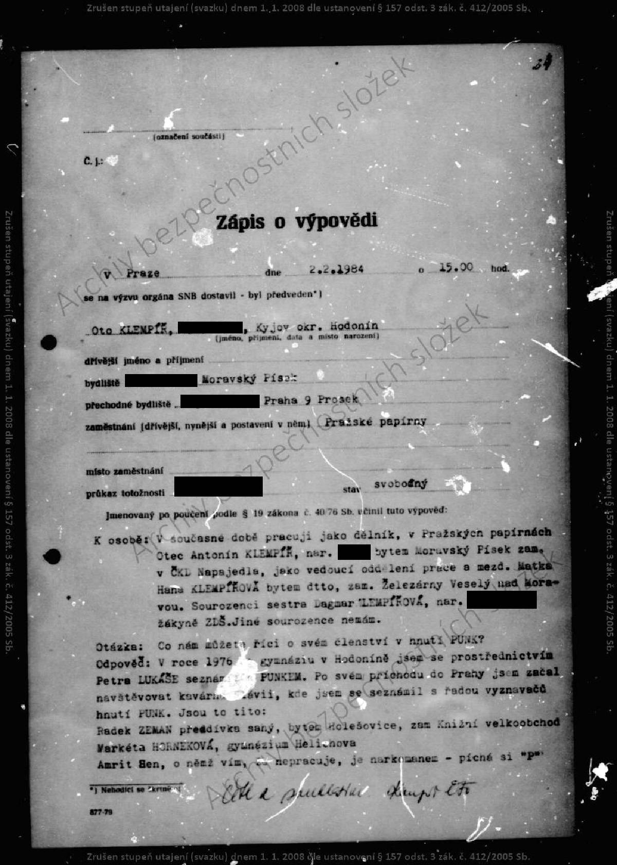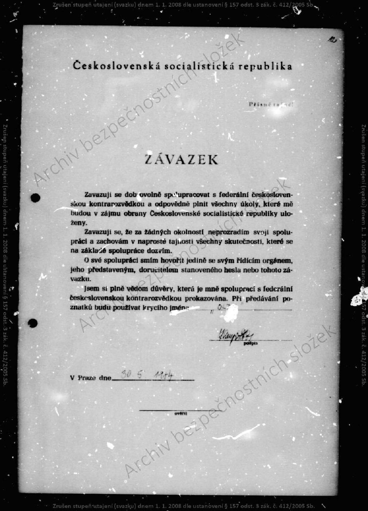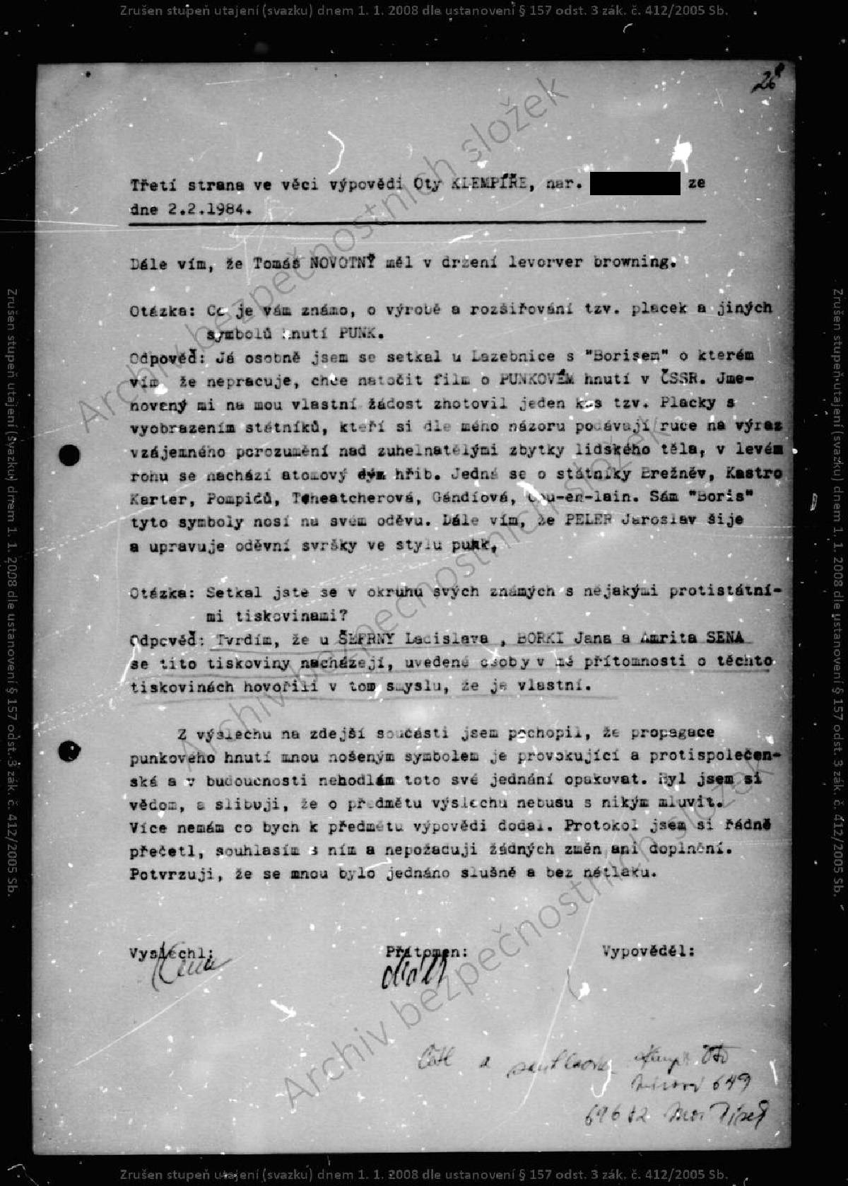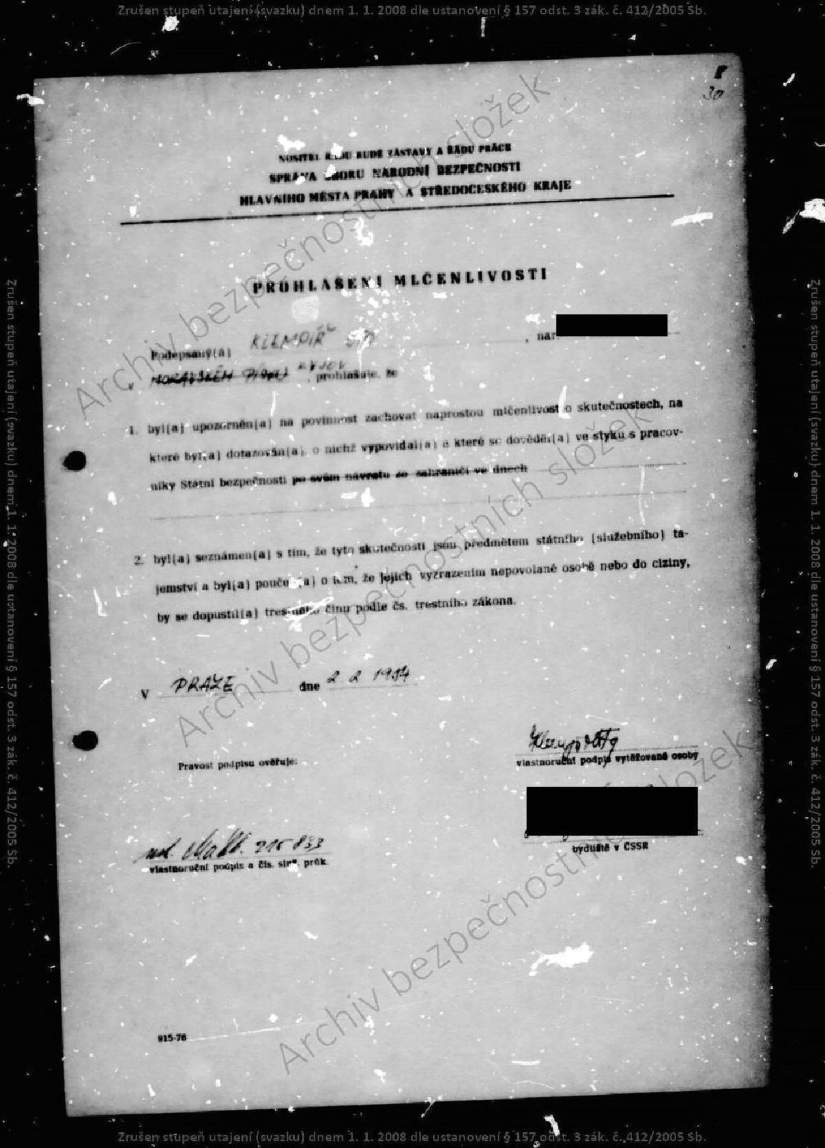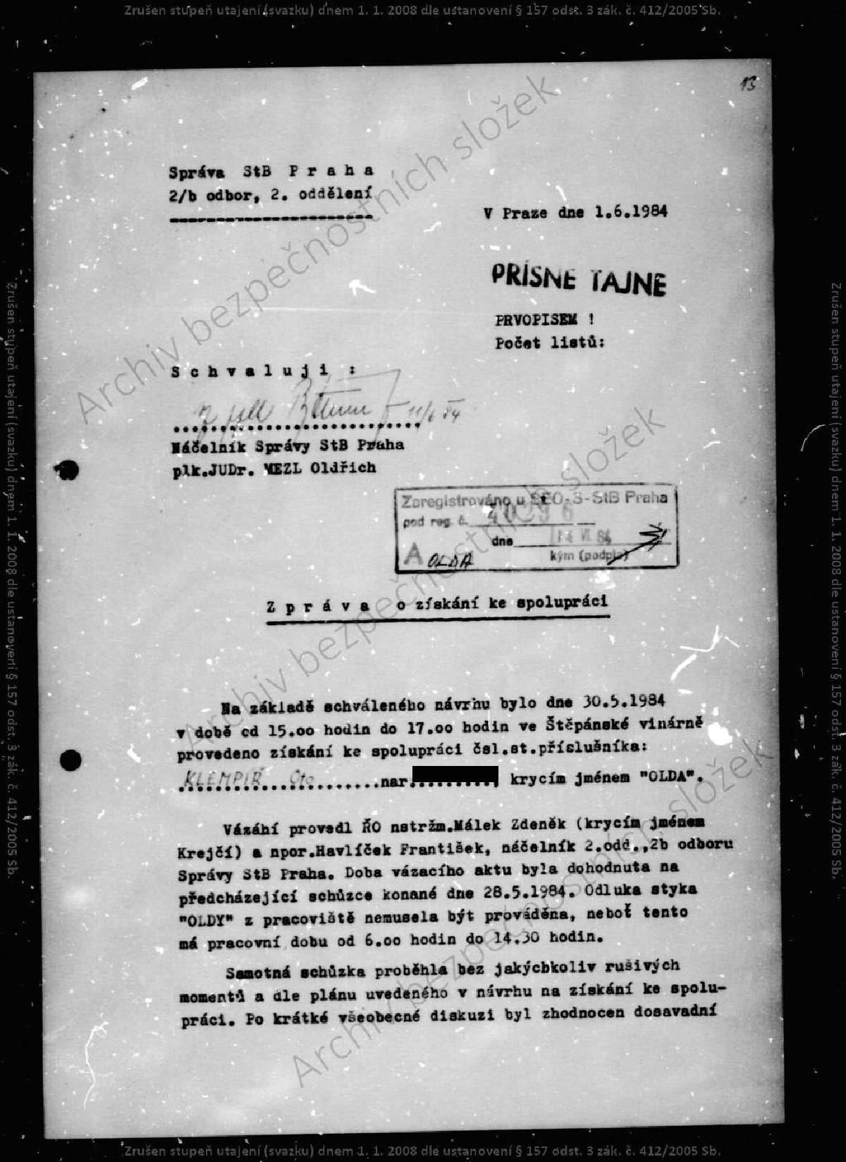 Oto Klempíř – svazek STB.
