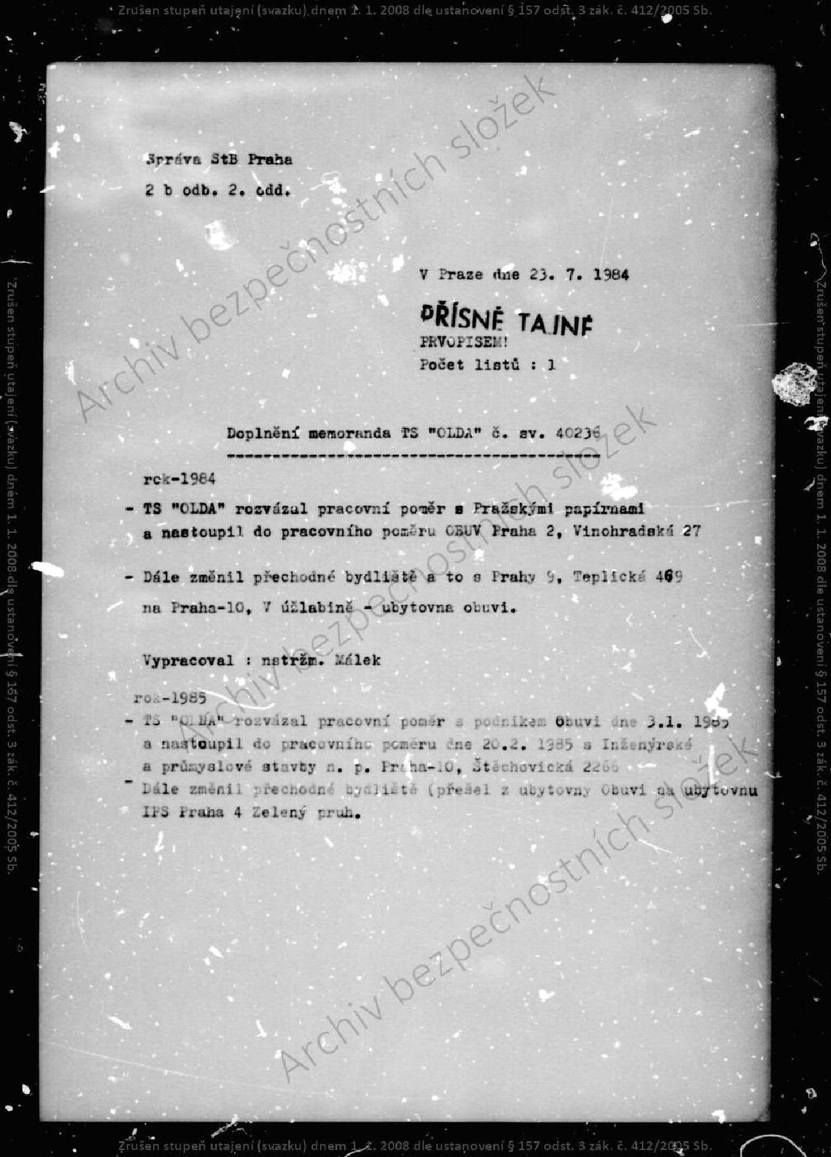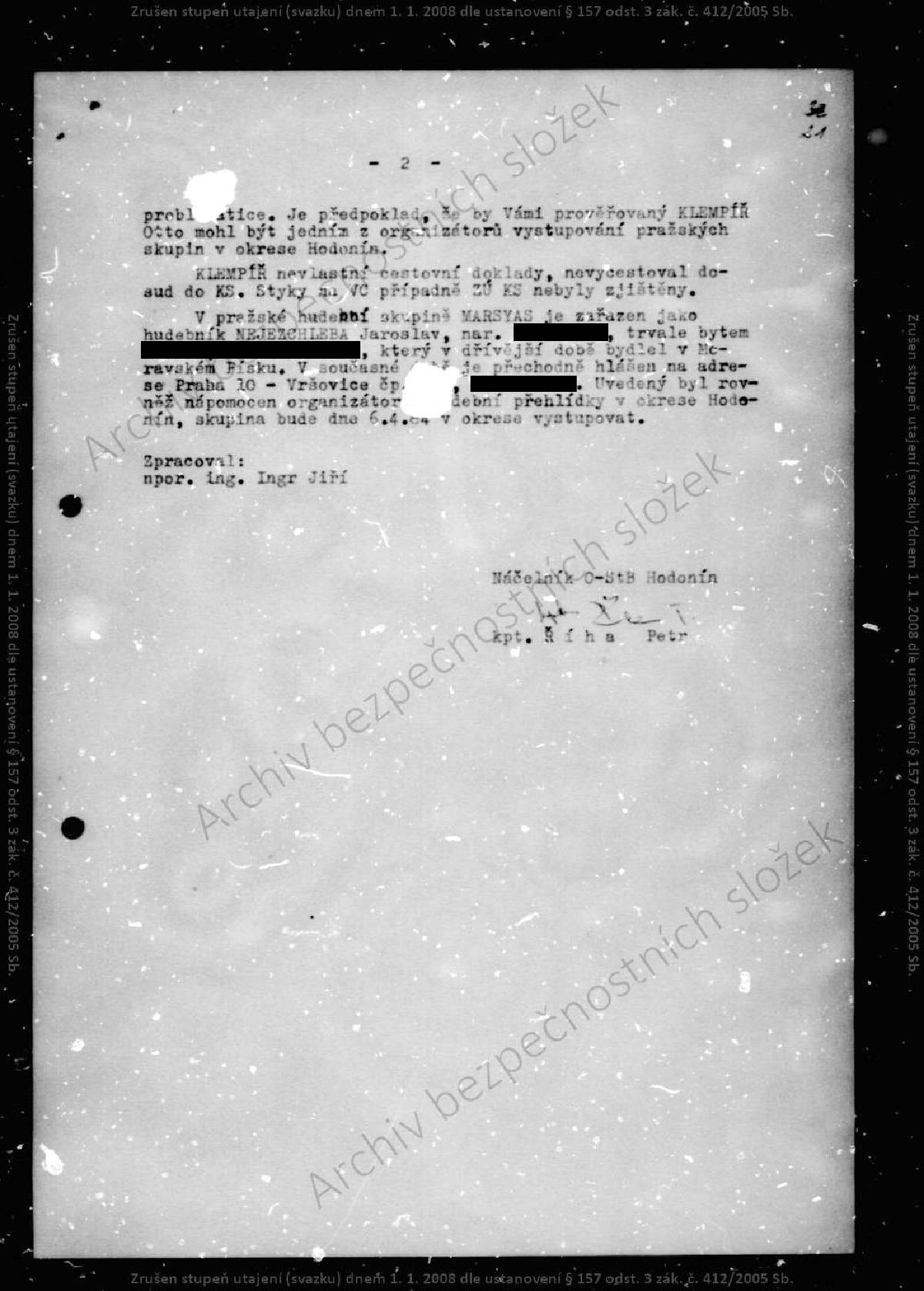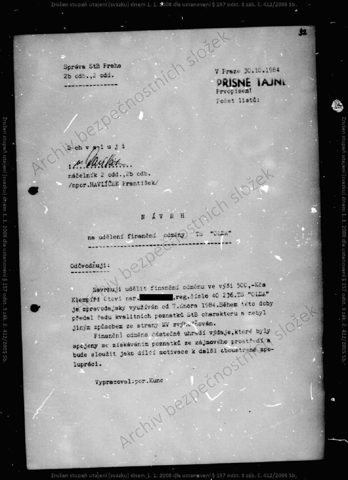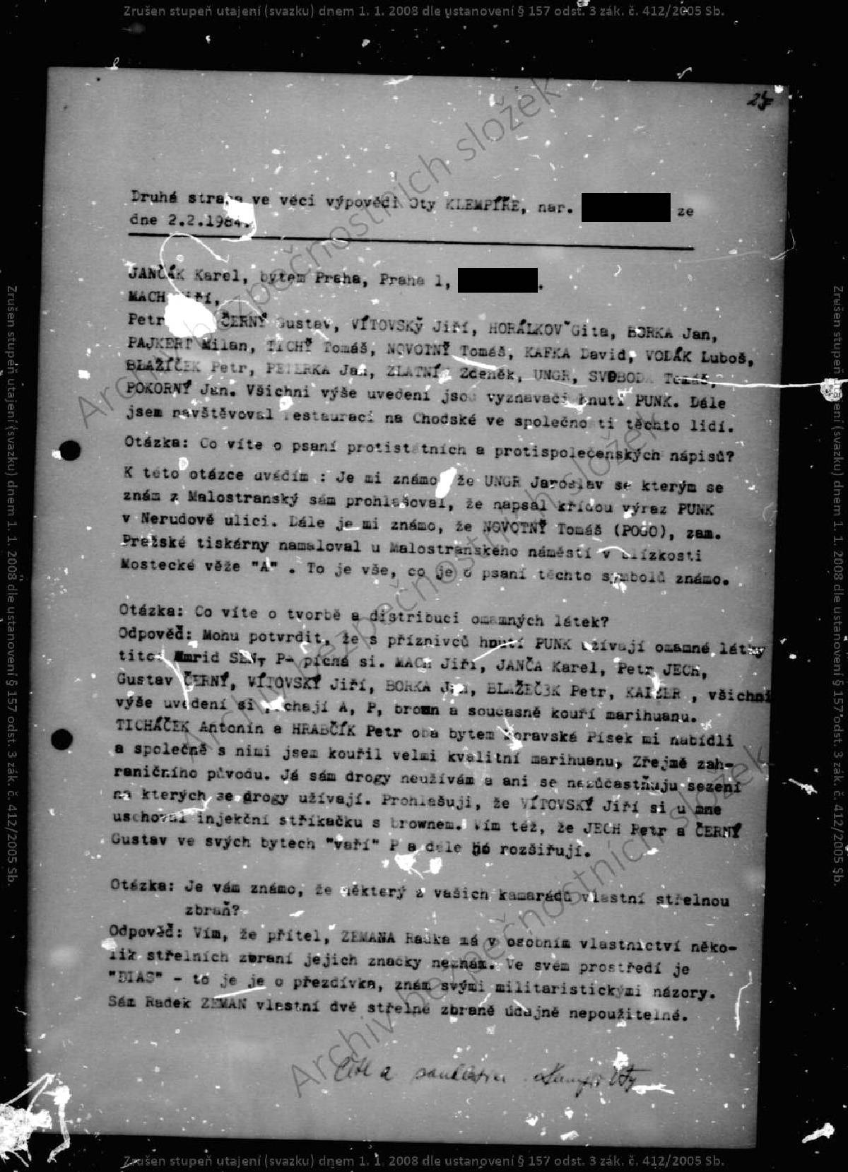 Oto Klempíř – svazek STB.