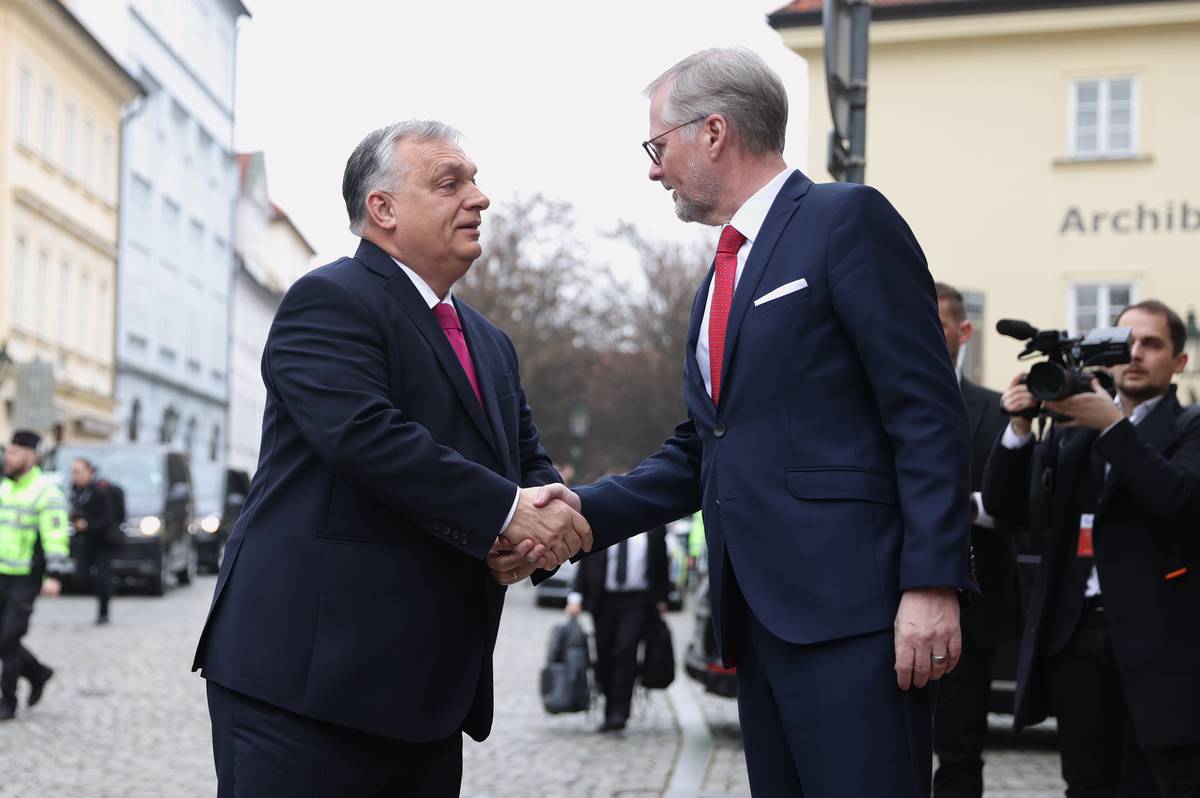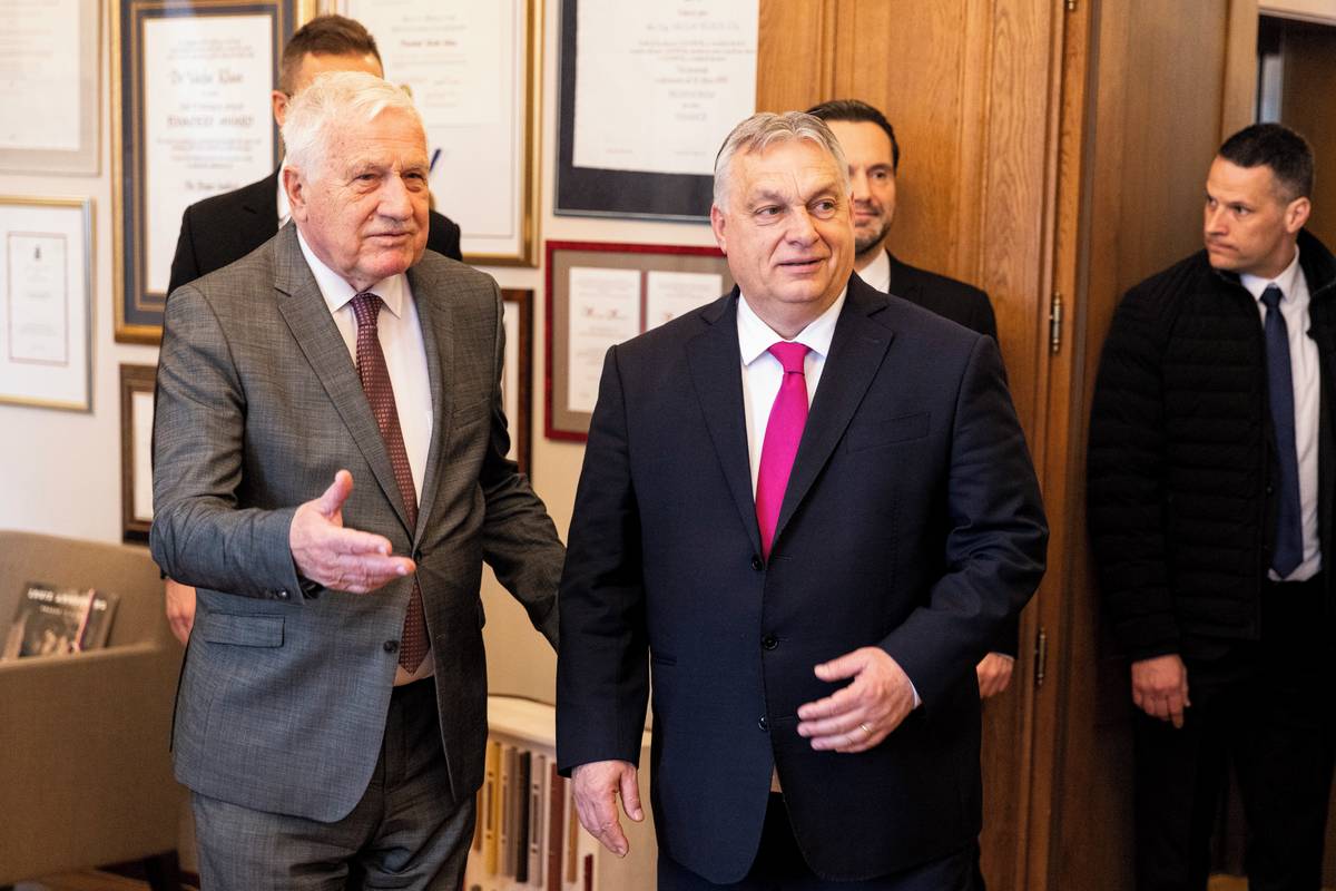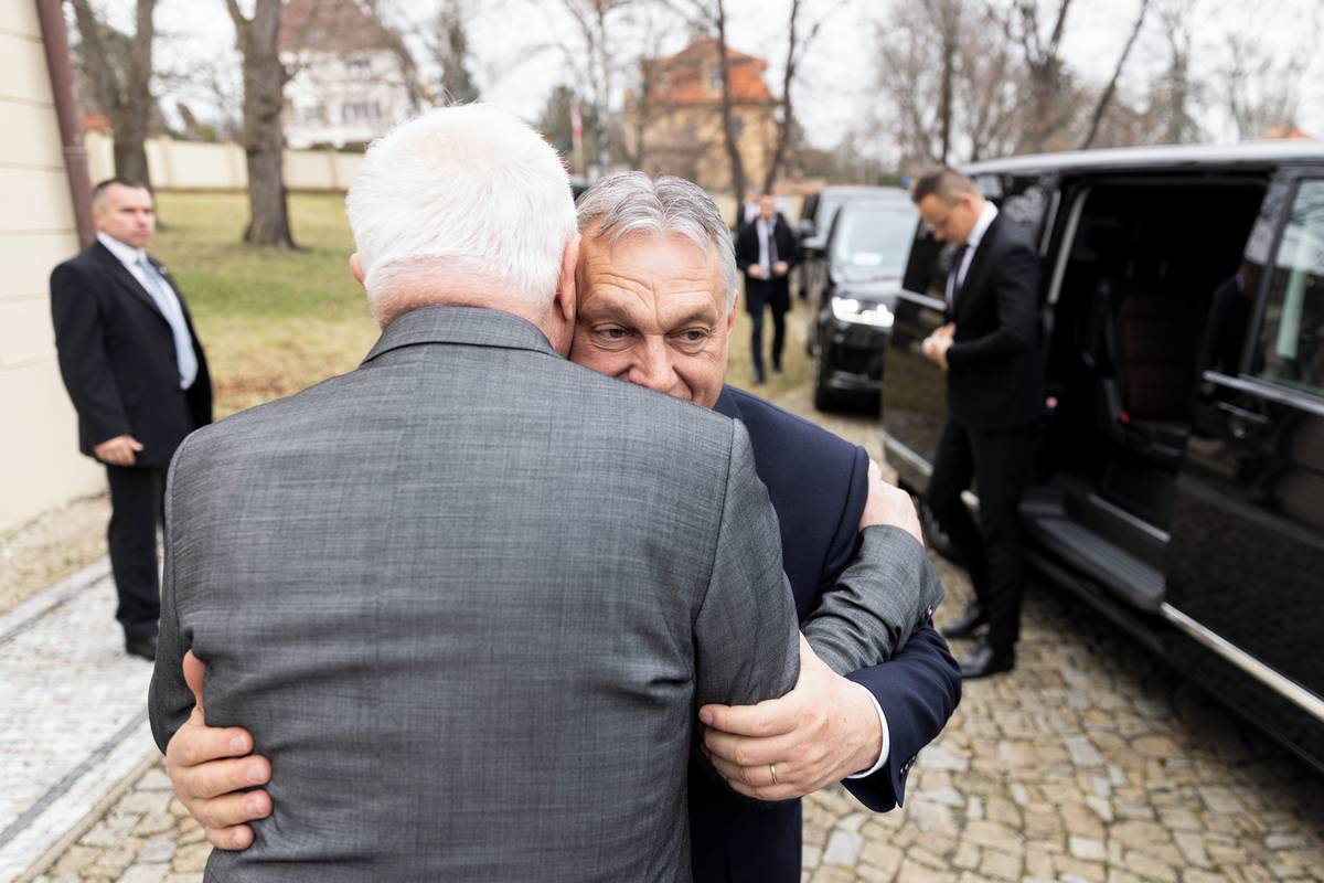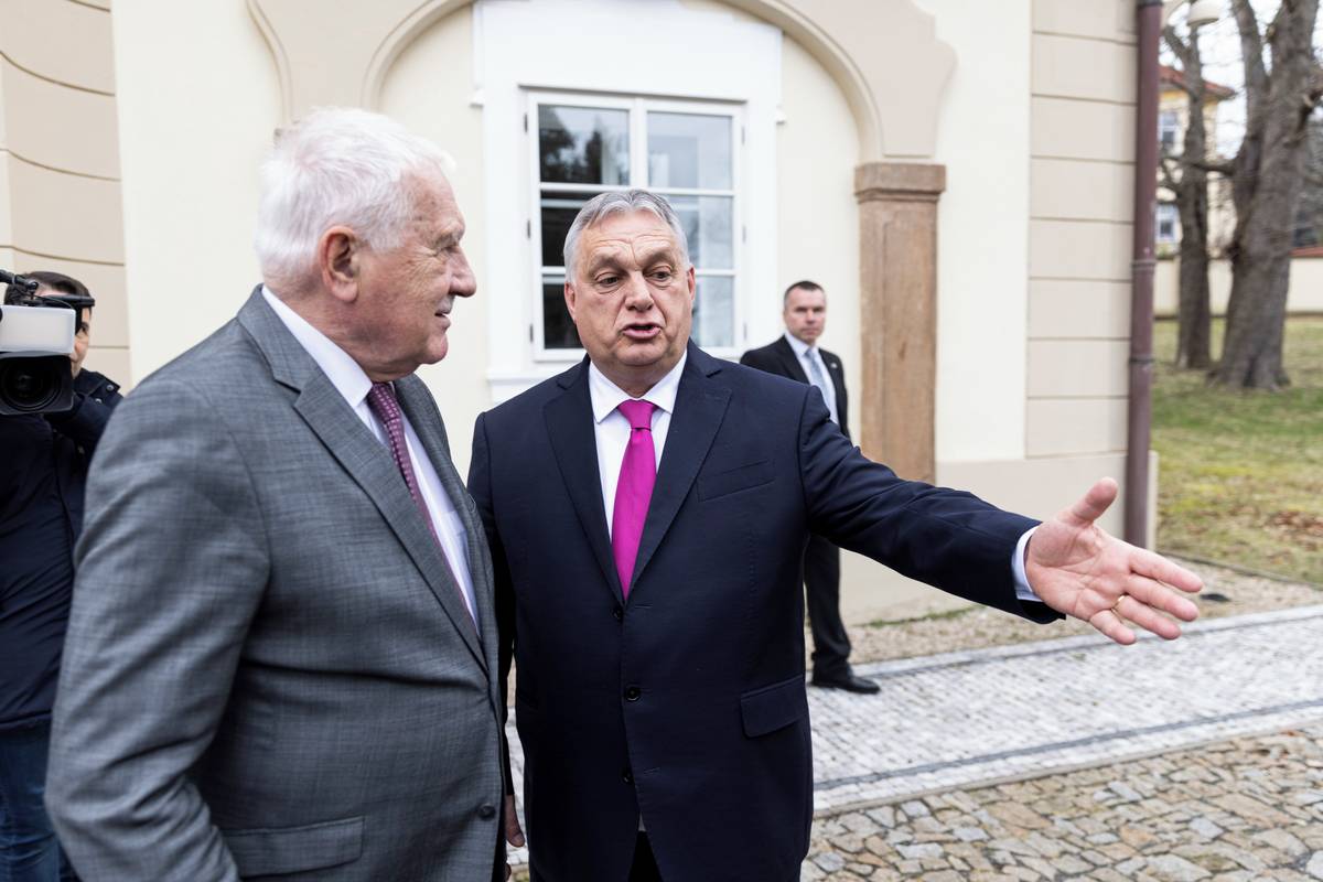 Maďarský premiér Viktor Orbán po jednání s šéfy vlád Visegradské skupiny zamířil z pražské Malé Strany na Hanspaulku za exprezidentem Václavem Klausem.
