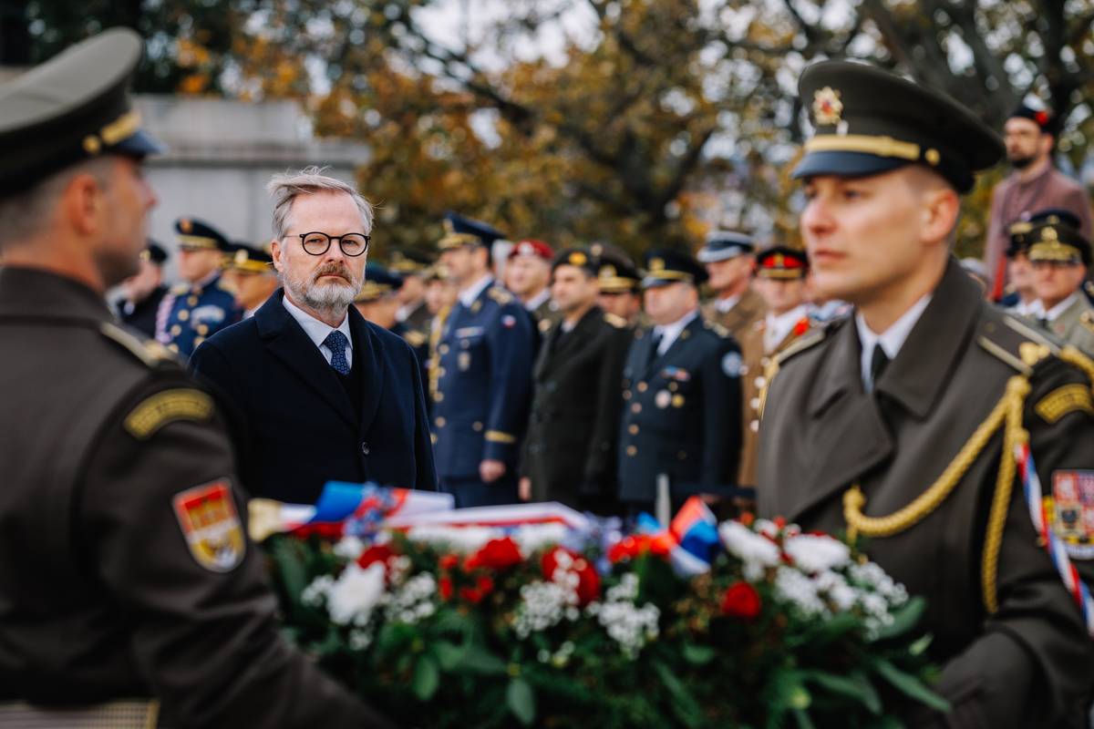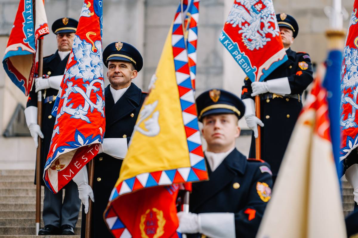 Slavnostního ceremoniálnu se účastní dosluhující premiér Petr Fiala.