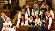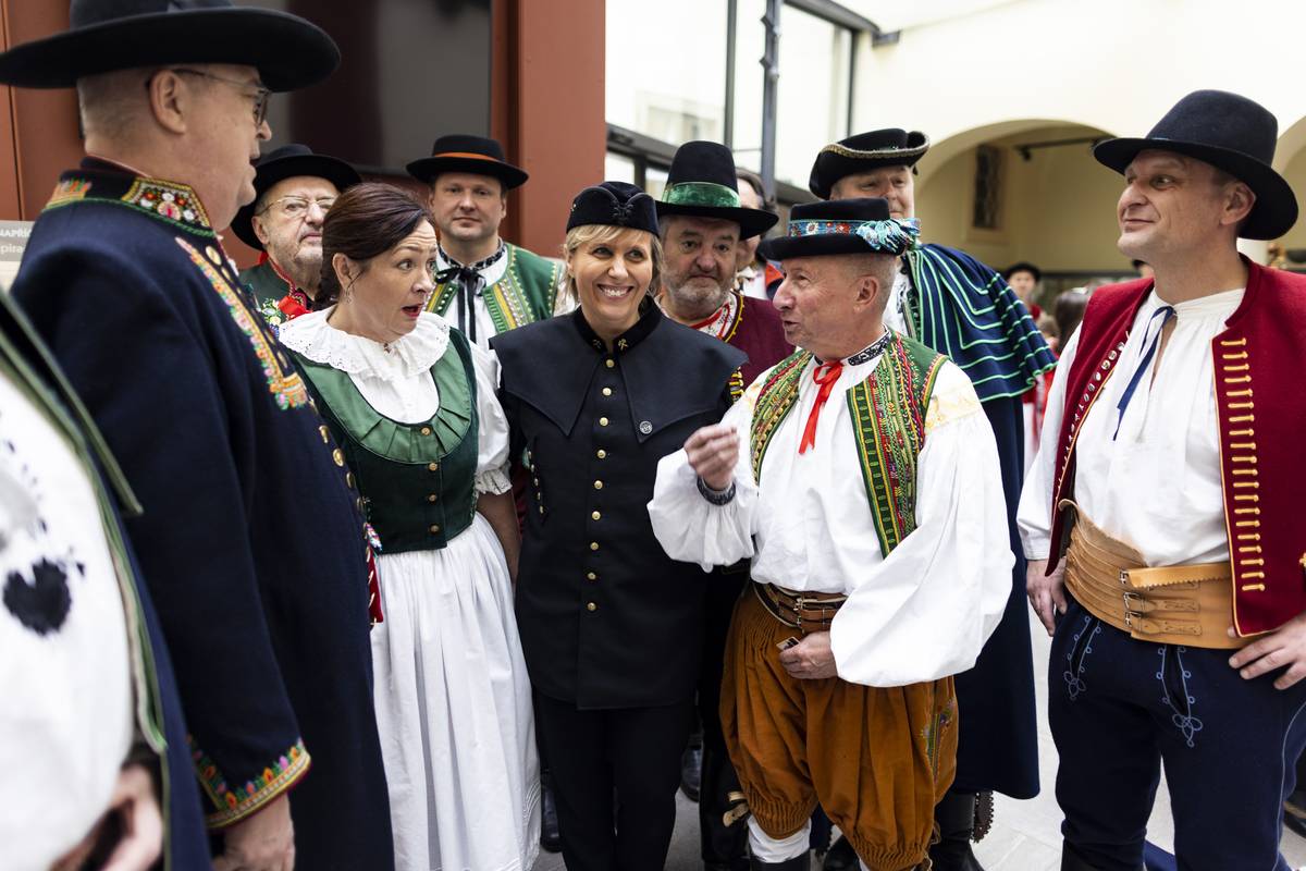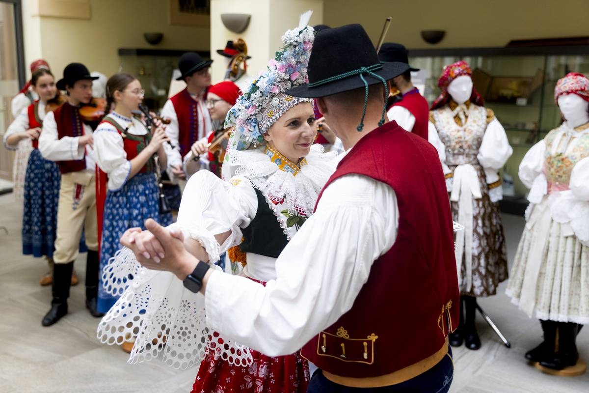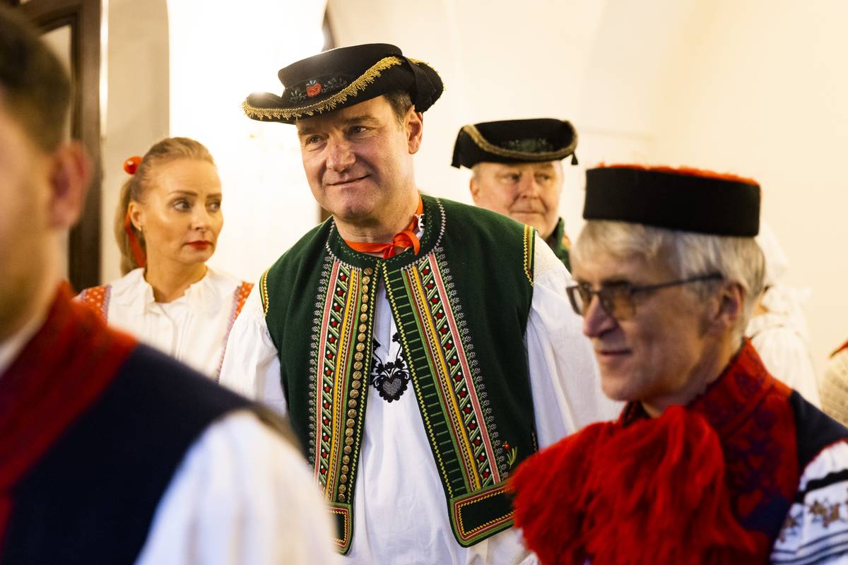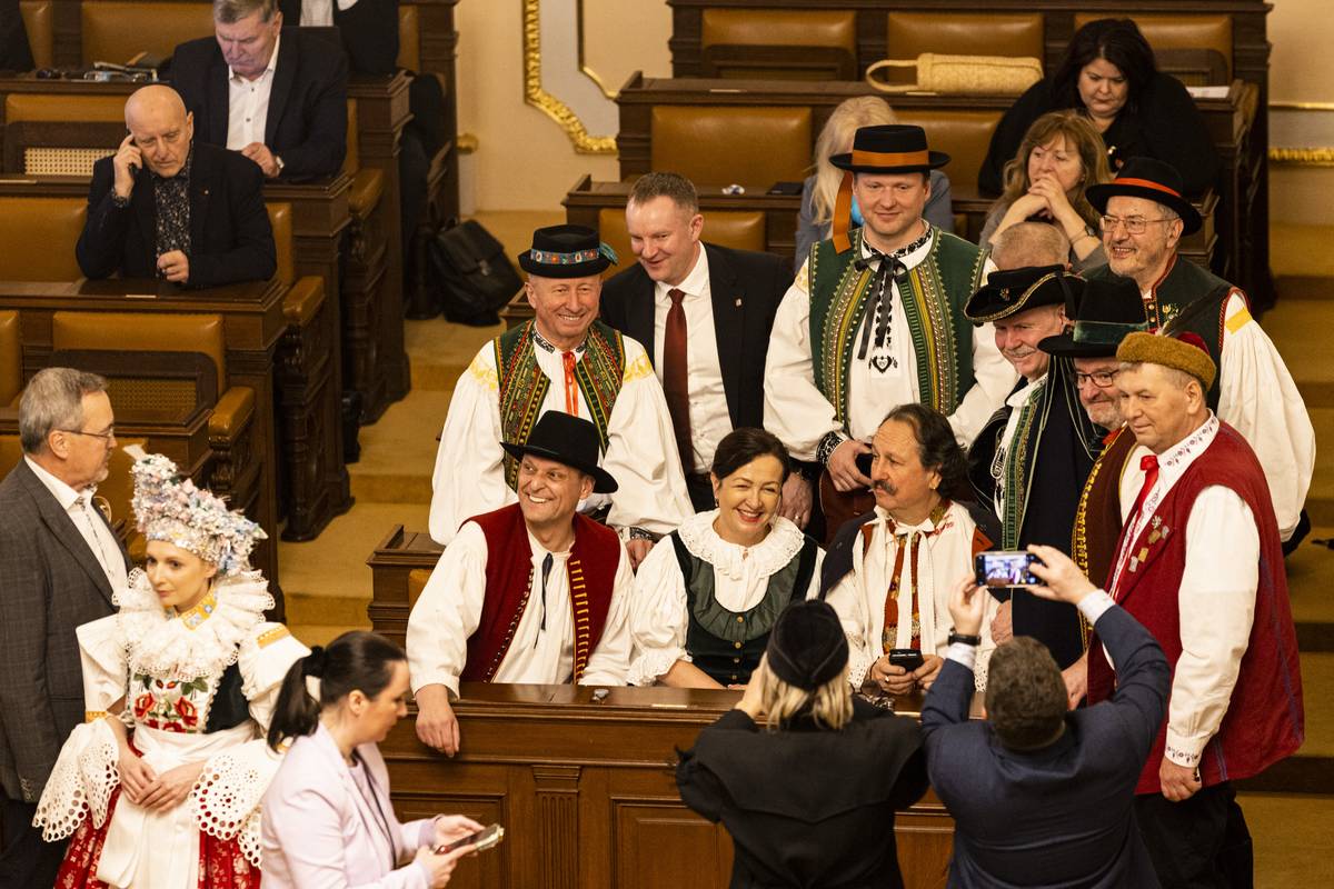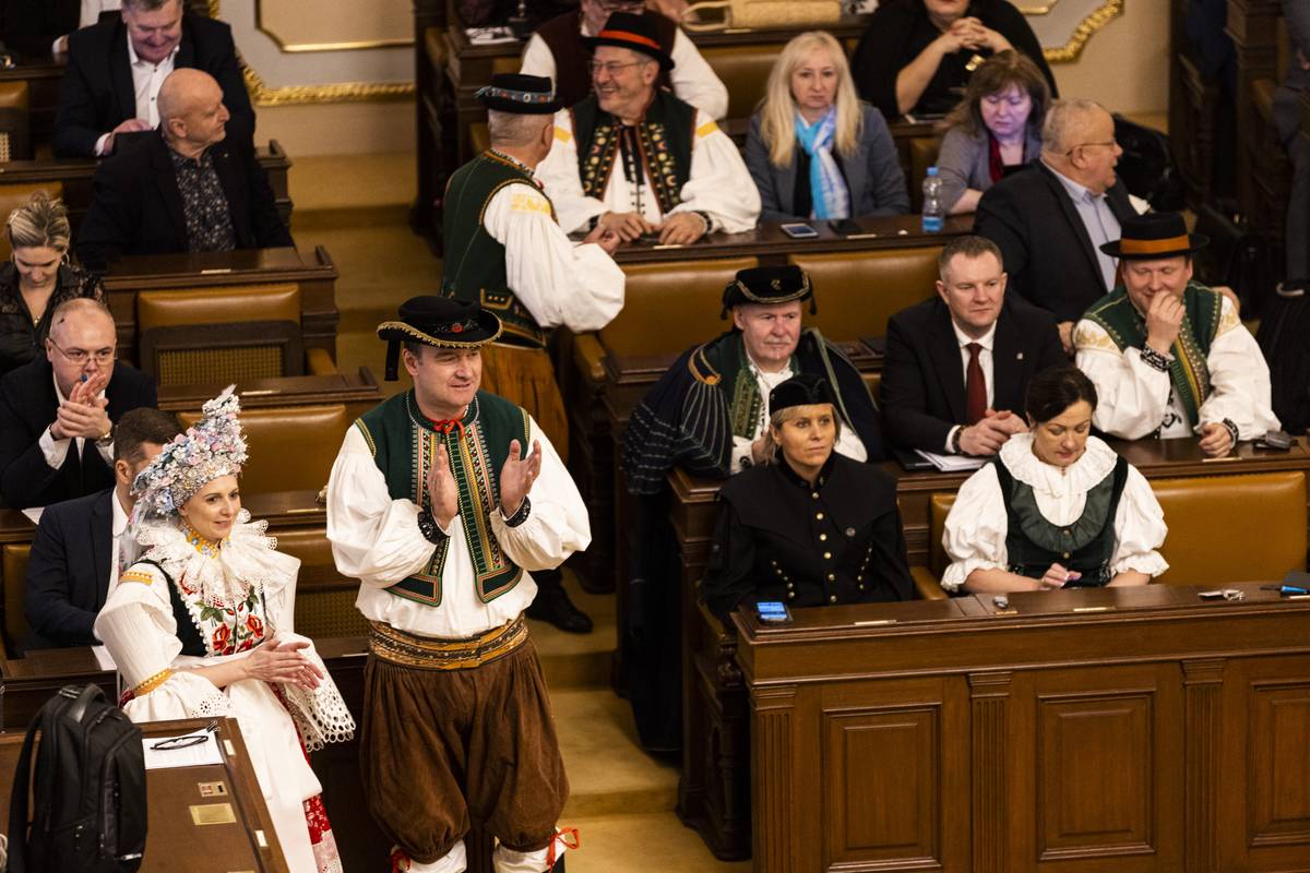 Krojovaní poslanci se nejprve sešli ve sněmovní Dvoraně, kde se konala vernisáž výstavy ženských, mužských a dětských obřadních a svátečních krojů zhotovených podle historických předloh z let 1820 až 1920.