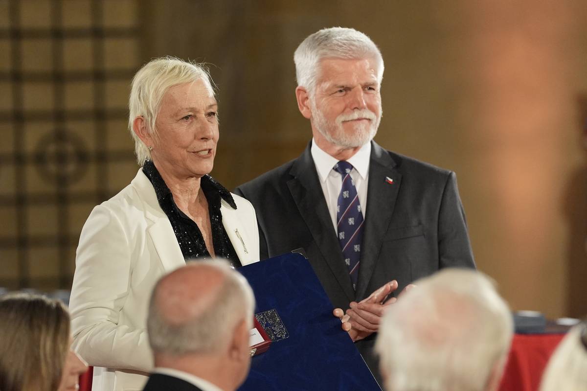 Prezident Petr Pavel s vyznamenanou Martinou Navrátilovou