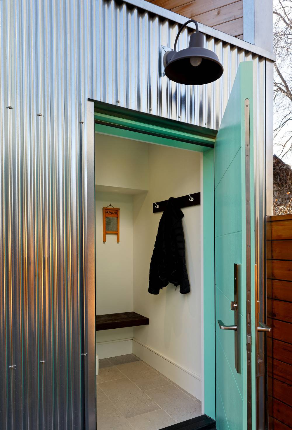 Díky obkladu z vlnitého plechu dům tak trochu připomíná vesmírný průzkumný modul.