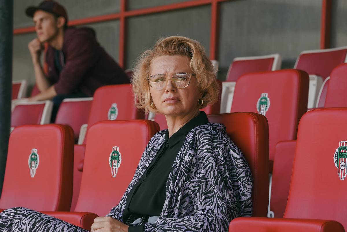 Na fotografii ze seriálu Štěstíčku naproti, který bude od pátku možné vidět ve videotéce Oneplay, je Denisa Barešová jako sudí Irča.