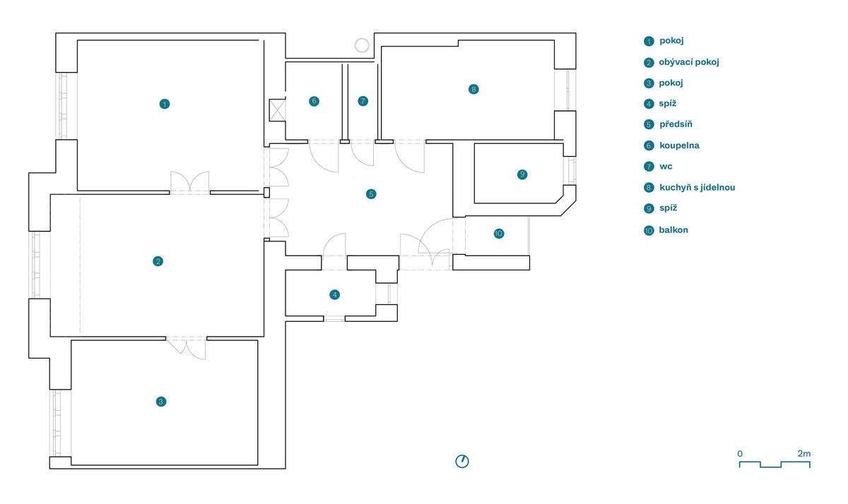 Půdorys bytu v původním stavu